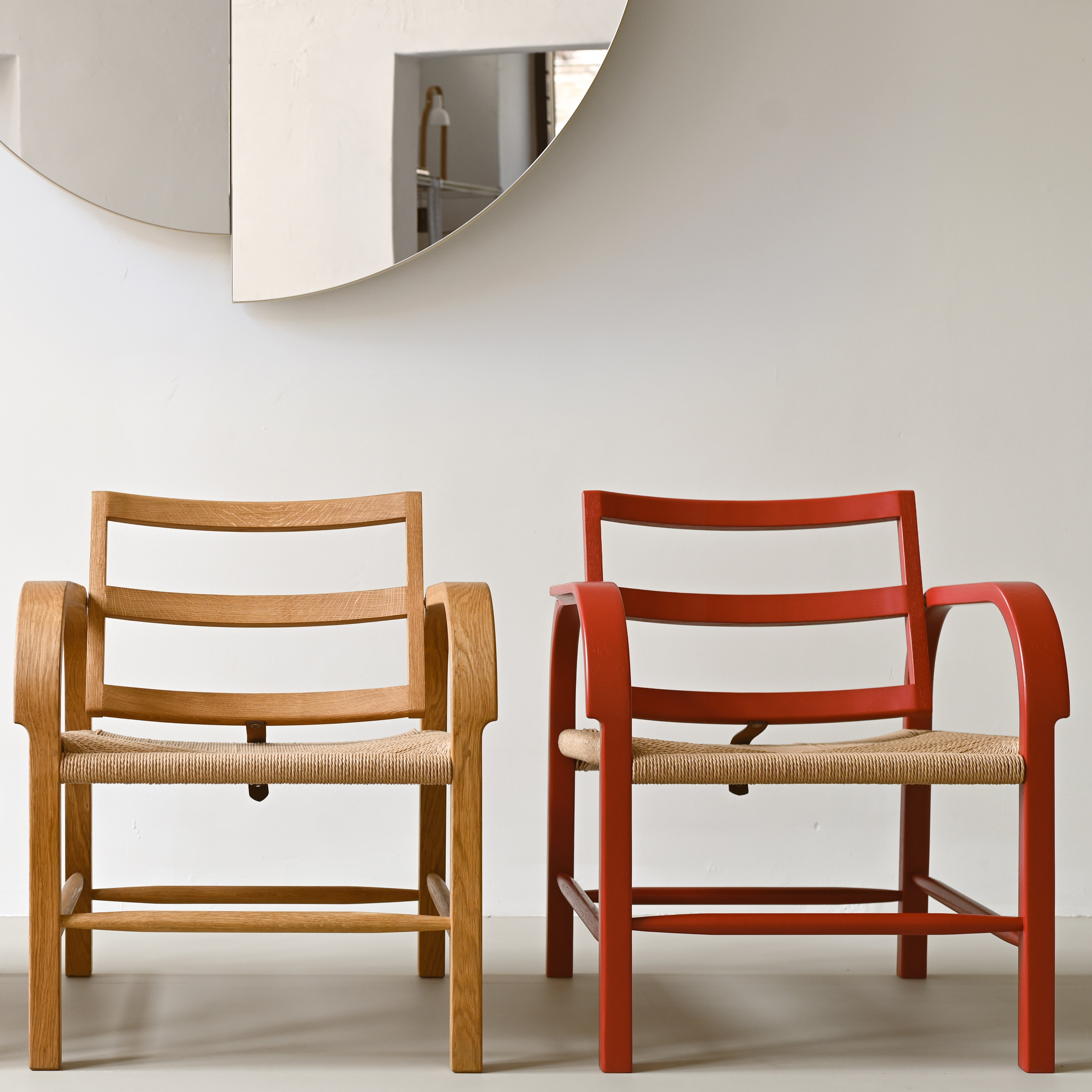 The Arch Weave Lounge Chair by Mazo Design is a tribute to the renowned Danish architect Magnus Læssøe Stephensen, capturing the essence of Scandinavian modernism with its architectural design and exceptional comfort. The chair features a unique interplay between its solid oak frame and paper cord weave. Available in natural oiled oak, ruby red, or auberge brown.
