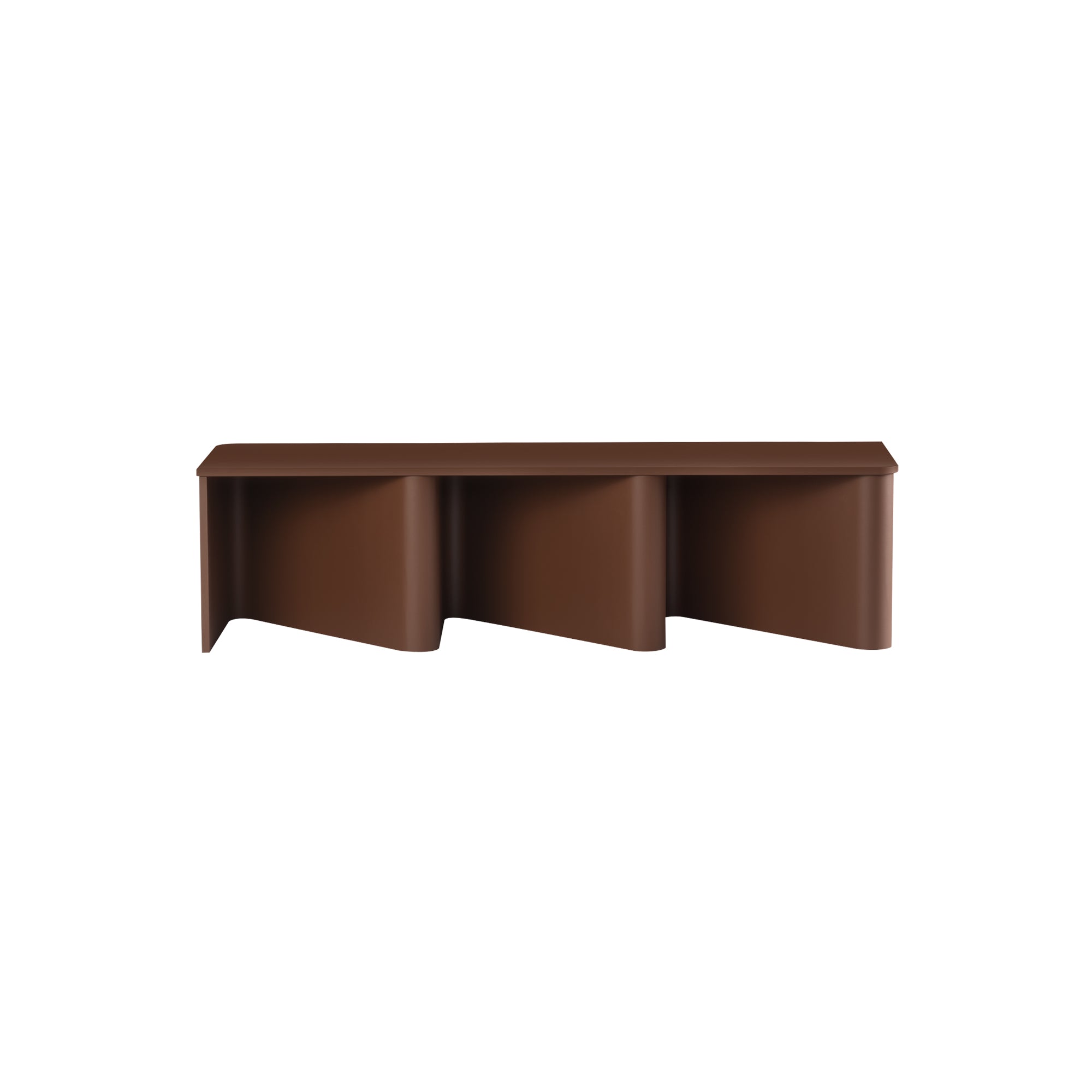 The Nami Bench features a base made from bent wood, shaped to form a flowing structure. It is available in several finishes, including flamed oak, Canaletto walnut, and 13 lacquered color options. Offered in 3 lengths, the bench can be used on its own or combined with others for extended seating.