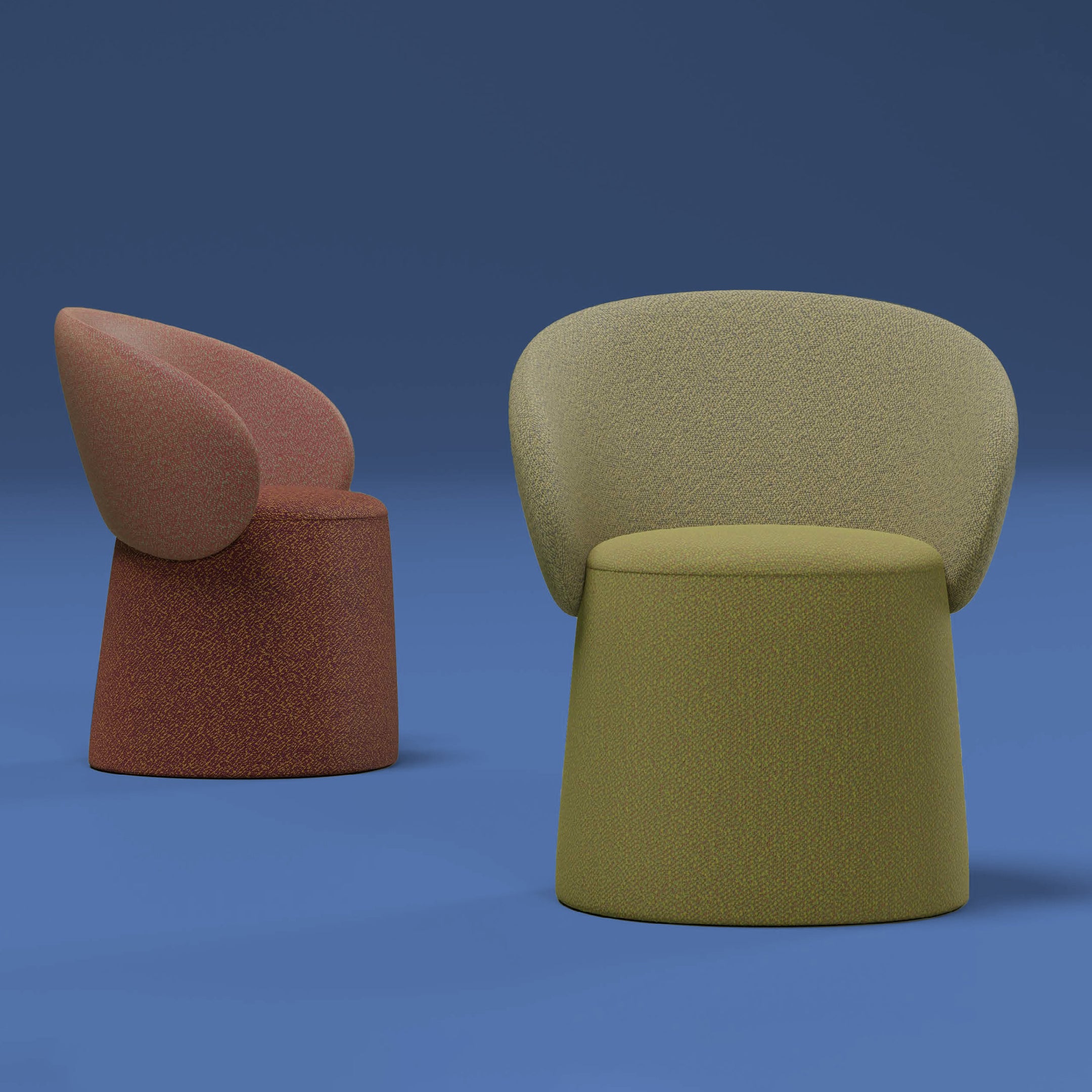 An upholstered base provides a strikingly coherent take on Miniform€™s luxuriously contoured Nebula Chair, named for its likeness to cloudlike forms in the cosmos. Conceived by design collective E-ggs, the seating offers completely customized upholstery in range of premium fabrics, smoothed over the curves of its padded polyurethane shell.