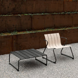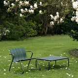 Mater adds a sizable low table to its ecologically reimagined Ocean range. Originally in wood veneer, the outdoor series designed in 1955 by Jørgen and Nanna Ditzel is now reissued with its slats made from discarded fishing nets mixed with upcycled hard plastic—more than 3 pounds of ocean waste in this piece. Durable for both private and public use, the table has a sleekly curving steel-tube frame in a gunmetal finish.