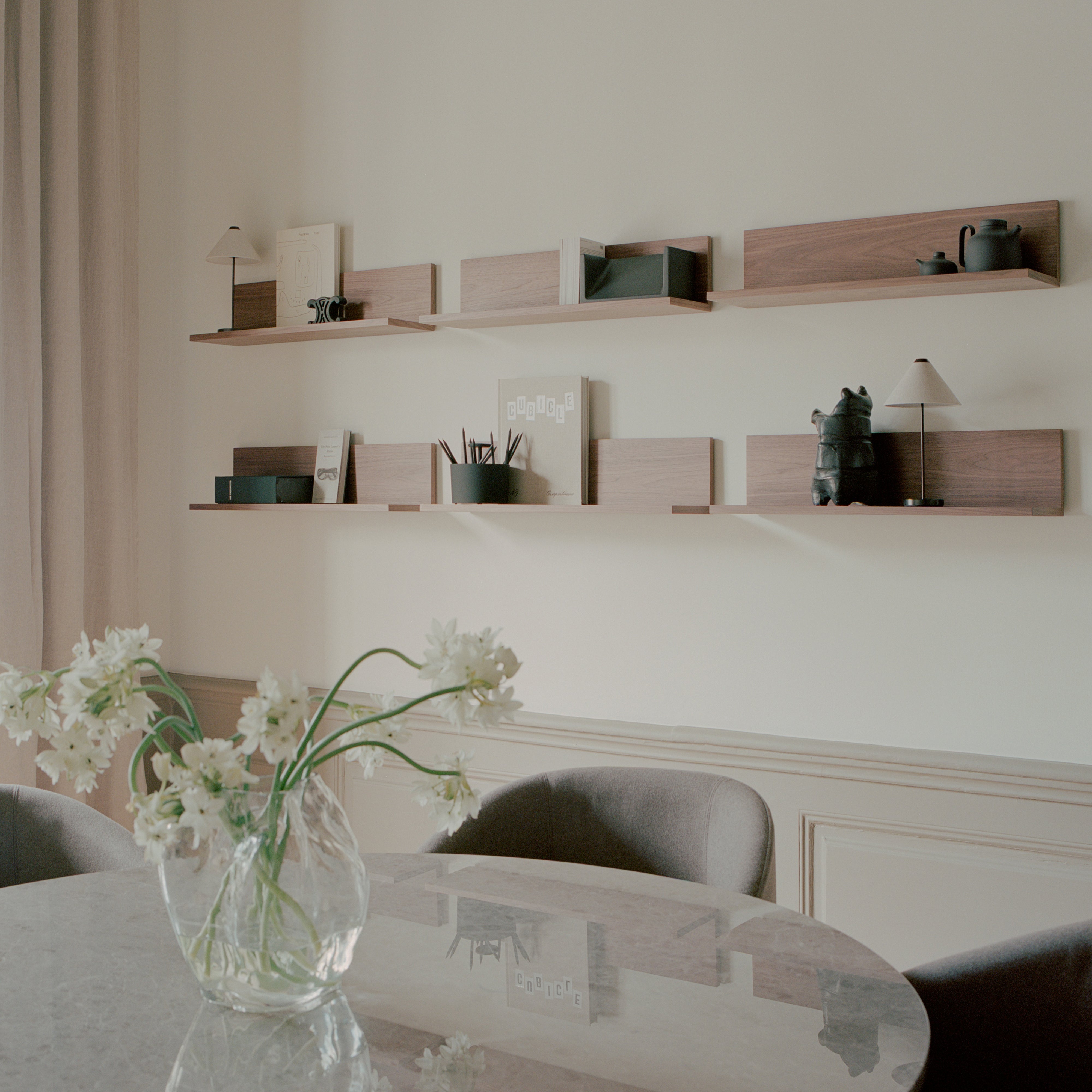 Elevate your home organization with the Tana Wall Shelf by New Works. This shelf showcases a minimalist design, crafted from premium wood to provide both function and style. Designed by Rikke Rützou Arnved, the Tana Wall Shelf features clean lines and a simple, handle-free look that maintains a sleek, uninterrupted surface. Ideal for displaying books, decor, or essentials, it creates a calm, cohesive backdrop.
