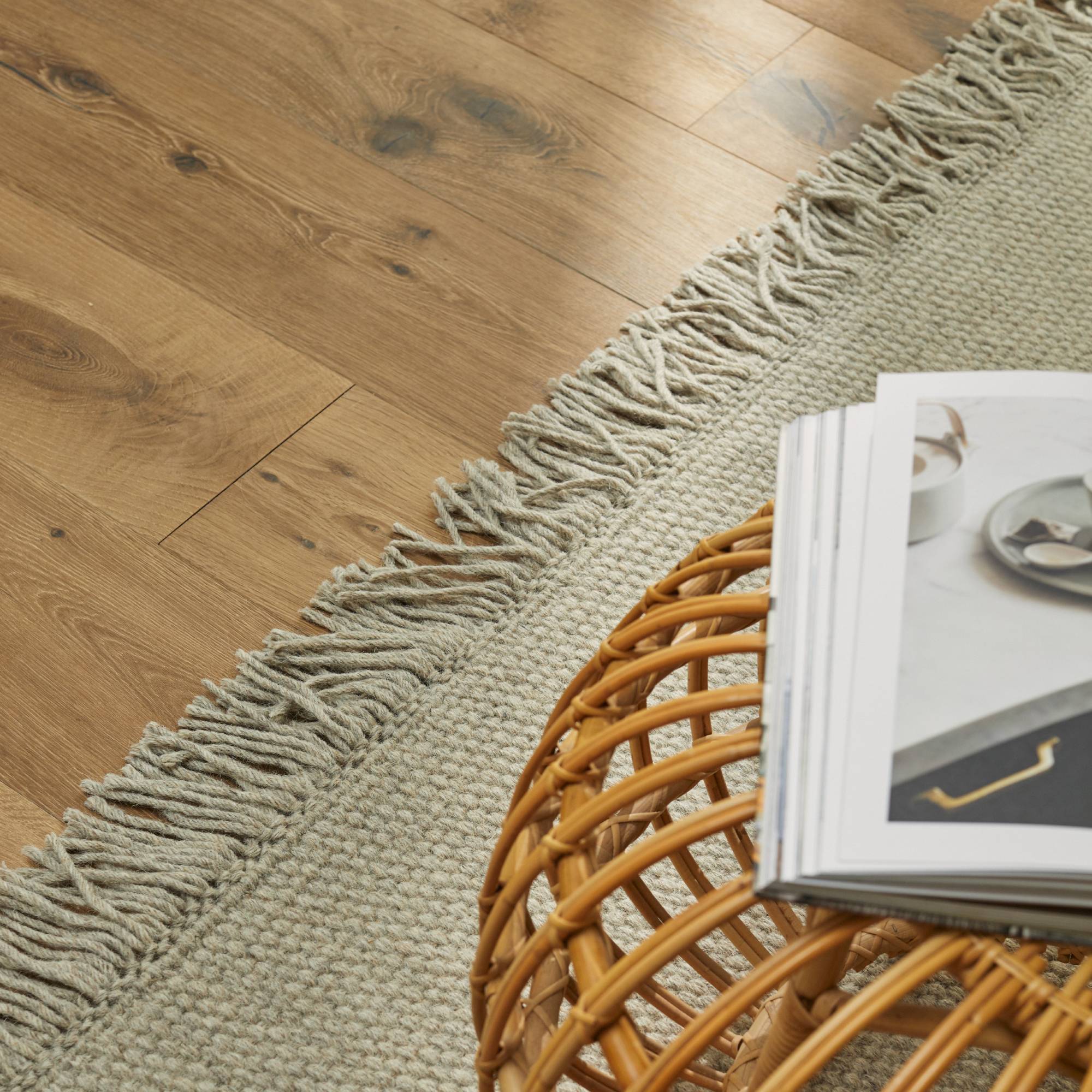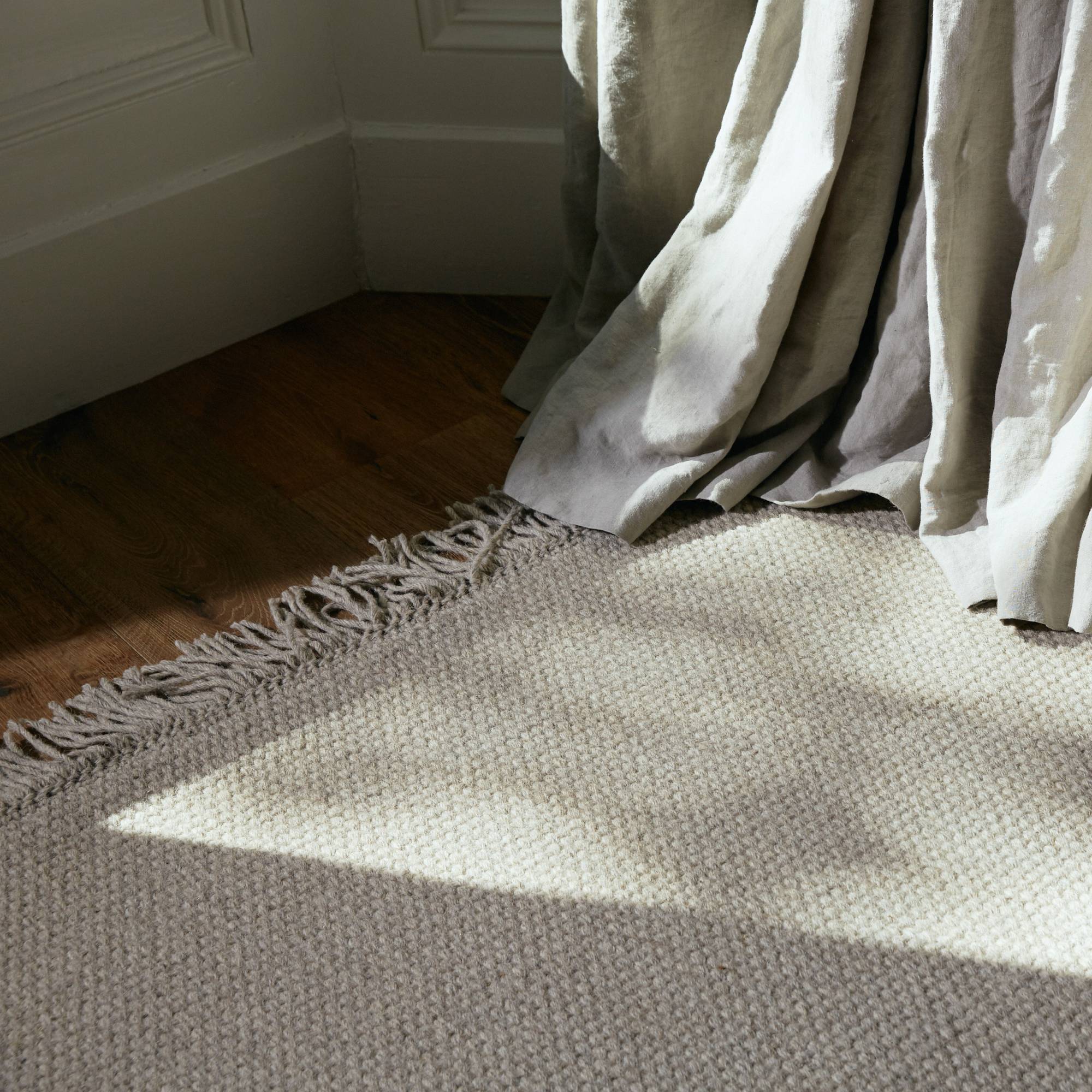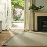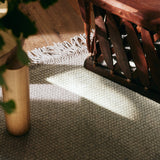 Inspired by an enduring classic, Nodi's fringed take on a basket weave strikes the perfect balance between subtle texture and a dash of room-enhancing character. The woolen area rug is ideal for spaces such as lounging areas and bedrooms that need an understated look that is also low-maintenance, hard-wearing and forgiving — and its flat-woven nature makes it friendly for pets. In 100% wool, the rug is handmade by artisans working in certified GoodWeave® factories in India.