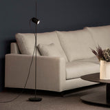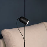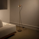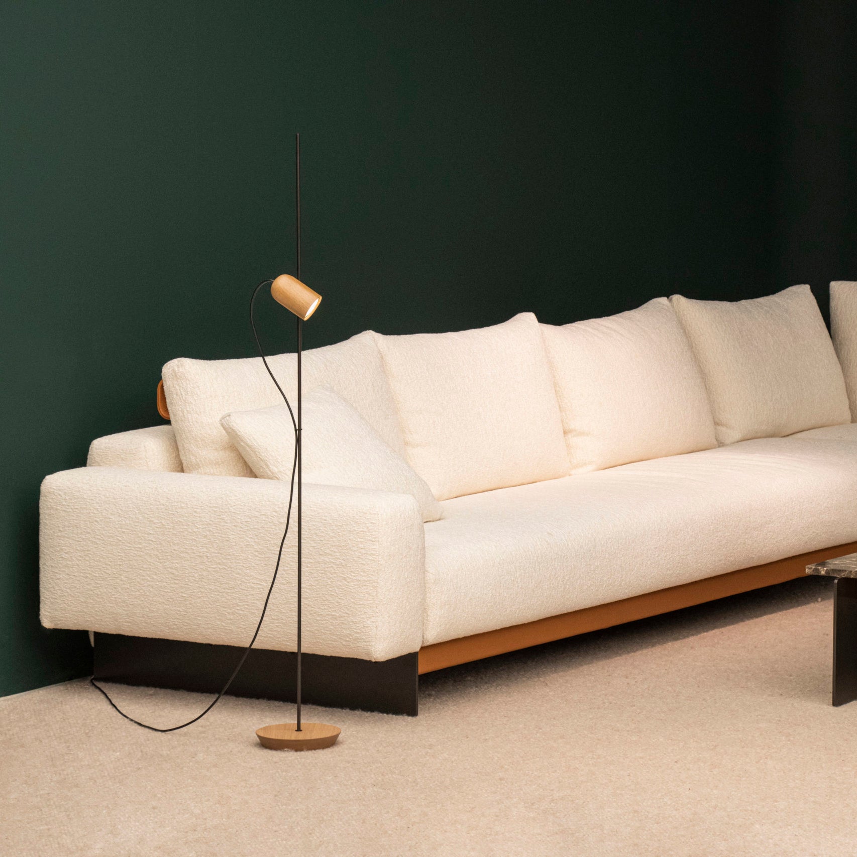 The Onfa Floor Lamp blends natural wood with metal for a refined look. Its metal body, available in brass or graphite finishes, is paired with a spotlight and base crafted from walnut, oak, or black ash wood. A magnet-based mechanism allows for easy adjustment of the light’s direction, adding flexibility.