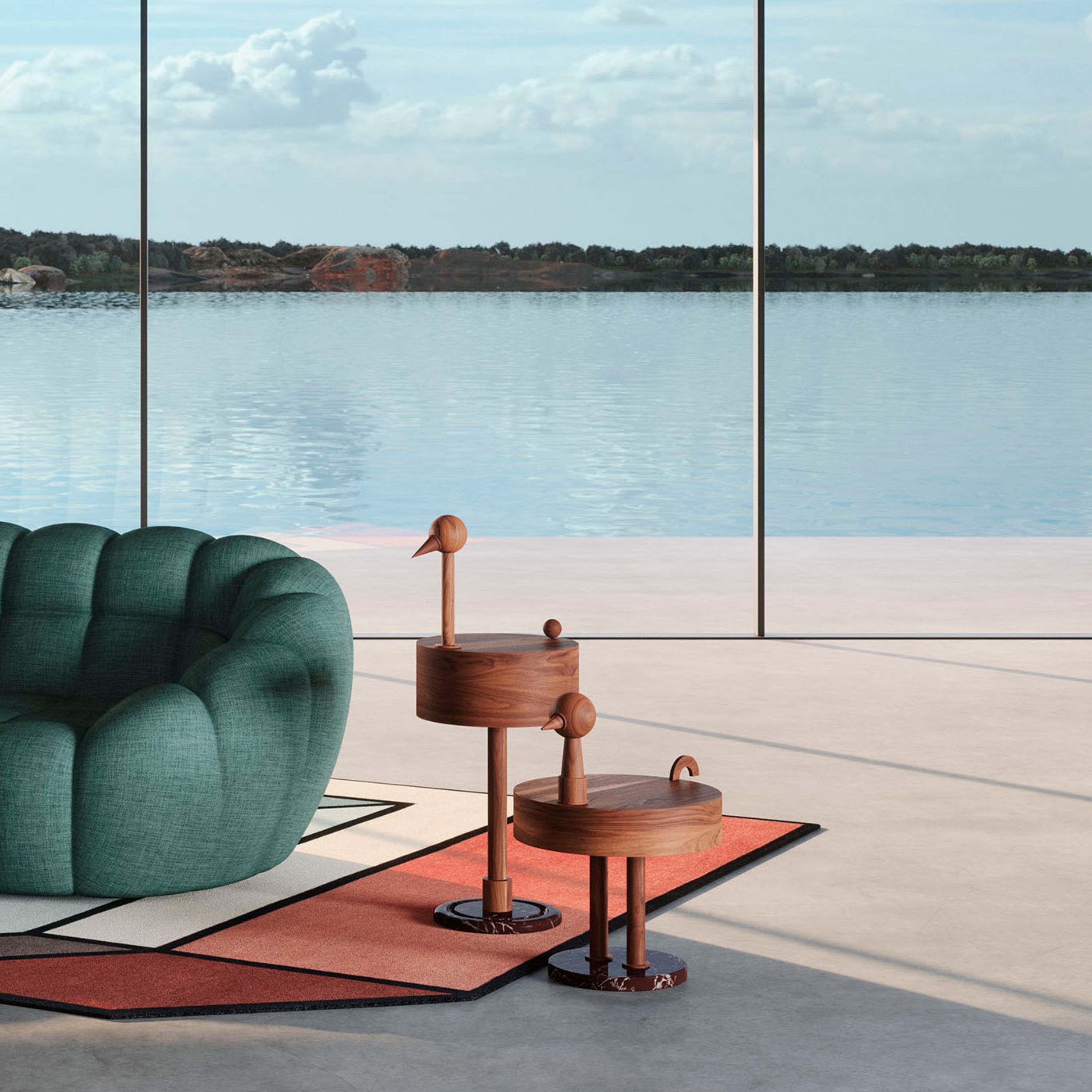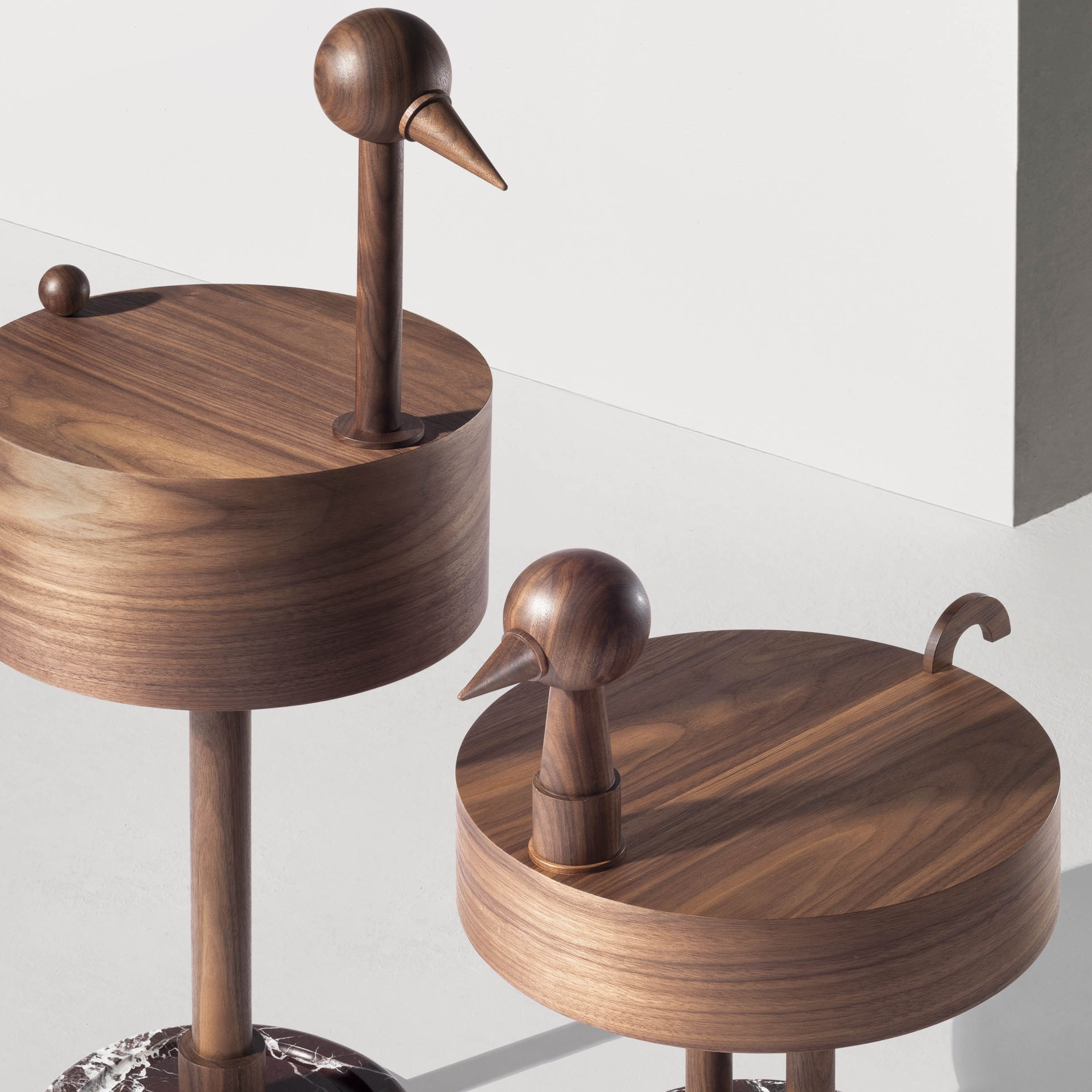 Literally translating its name from the Latin for “rare bird, Mermelada Estudio transforms an everyday object into an artistic statement-piece. An eccentric take on cubist style, the side table renders its geometric, avian-inspired shape in rich walnut with the flourish of a Rosso Levanto marble platform base. Beautifully crafted by Barcelona’s Nomon Home, it’s offered in dual sizes of differing heights — to place singly or in a whimsical pairing.