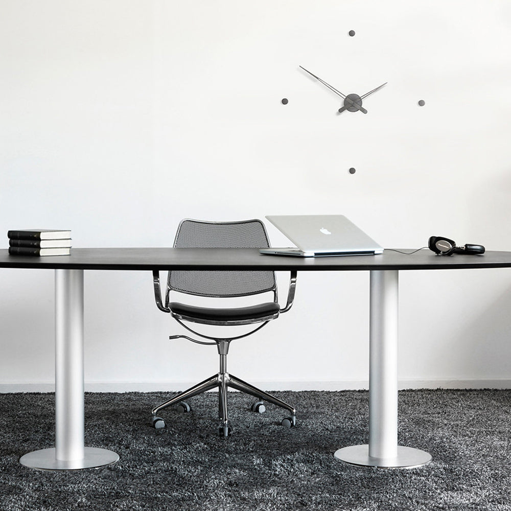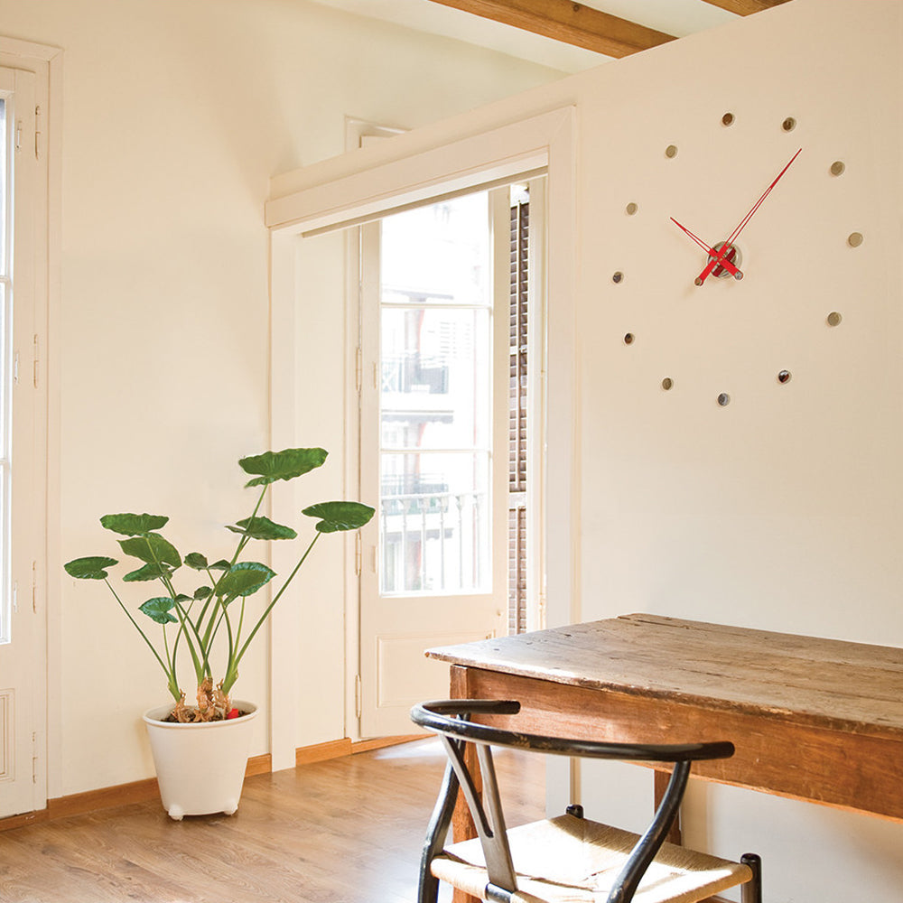 With enduring Midcentury vibes, Rodón offers a minimalist approach to timekeeping, with tapered clock hands and wall-mounted time markers in a choice of 3 diametric sizes. Nomon’s essential design also gains versatility in the range of materials—graphite or polished brass finishes or a chromed option with either matching metal or colored clock hands— and is completely handcrafted in Spain, powered by a German quartz mechanism.