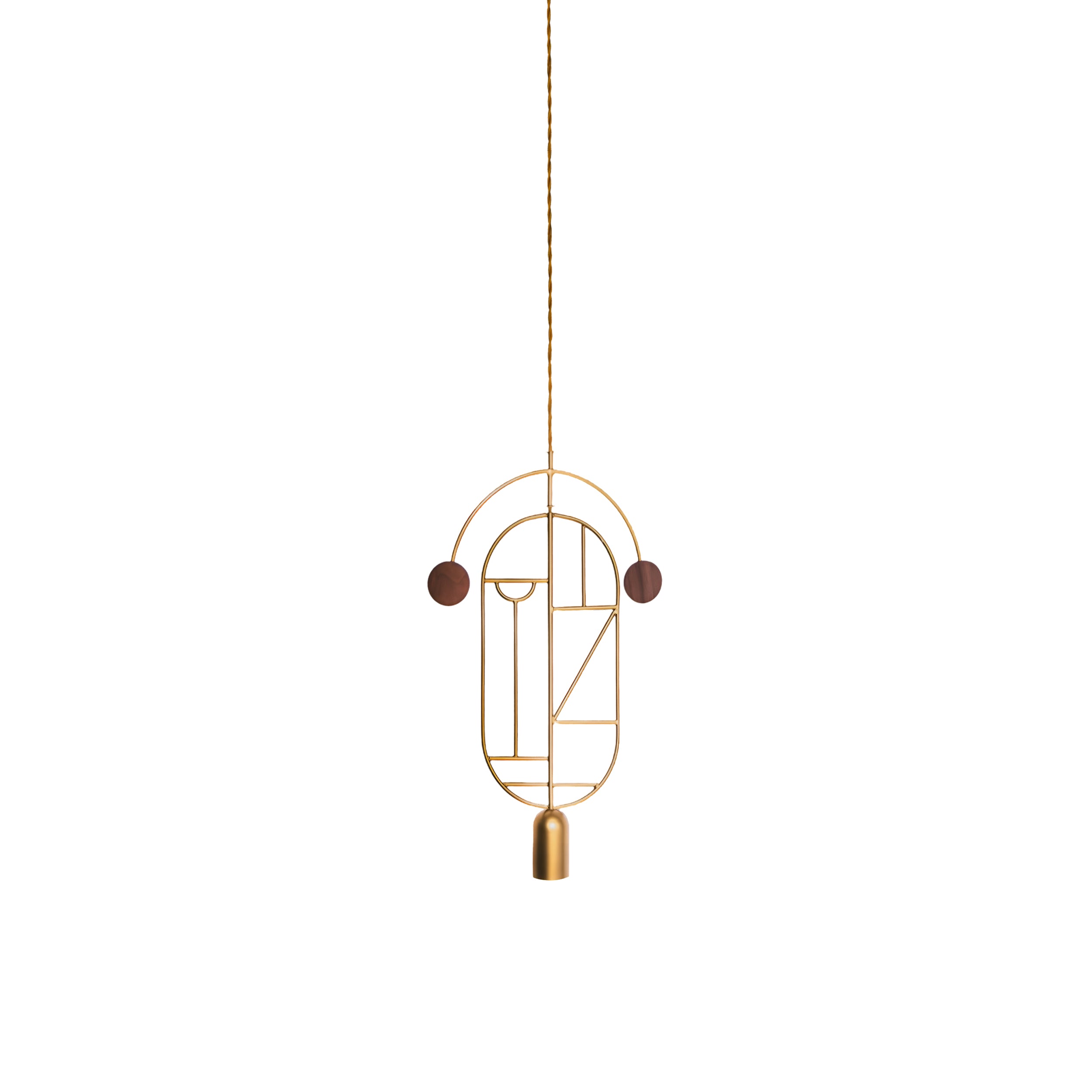 The Wooden Dots Suspension Lamp with Stem by Nomon Home is a pendant light crafted from metal and handcrafted natural walnut wood. The lamp’s components can rotate around the cable, allowing for adjustable arrangements. Available in gold or graphite metal finishes, with circular details in walnut or coordinating colors.