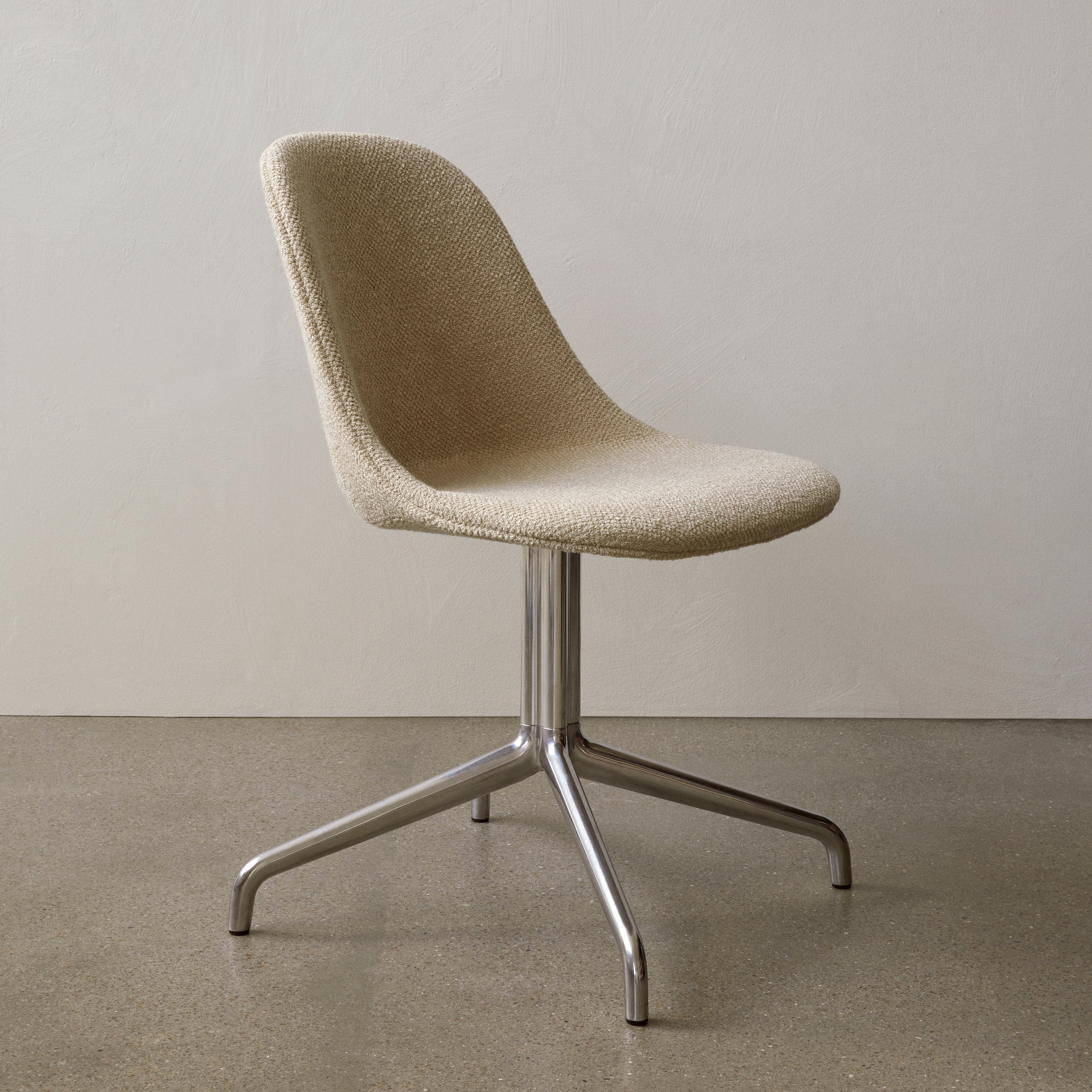 Sheathed in a fine textile or premium leather, this upholstered side chair extends the Harbour family. With the swivel feature, it’s easy to toggle between desktops or follow a wide-ranging conversation at a conference table. Ergonomically inclined, the shell seat is thoughtfully scaled to fit compact spaces and under tables.