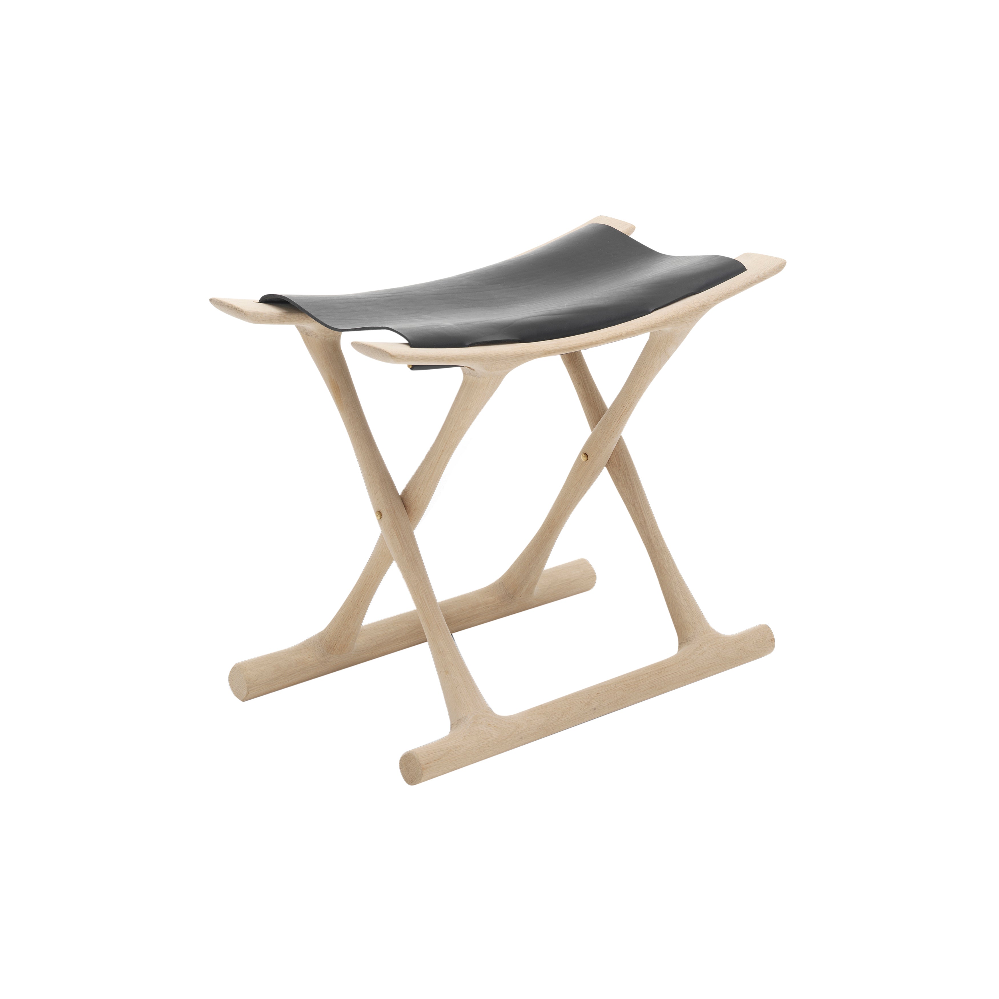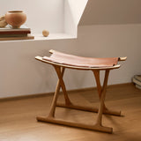 As with Carl Hansen & Søn's companion folding table, Danish designer Ole Wanscher drew inspiration from Ancient Egypt and Thebes when designing his Egyptian Stool. Crafted in solid oak in a range of available finishes, it features a seat in saddle leather in a choice of natural, cognac or black hues. Easily collapsible when not in use, the seat folds down into the chair when in the folded position.