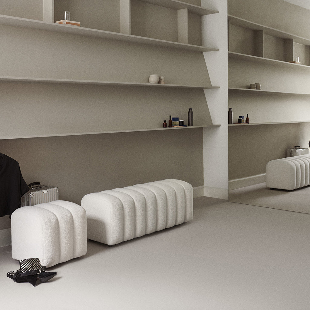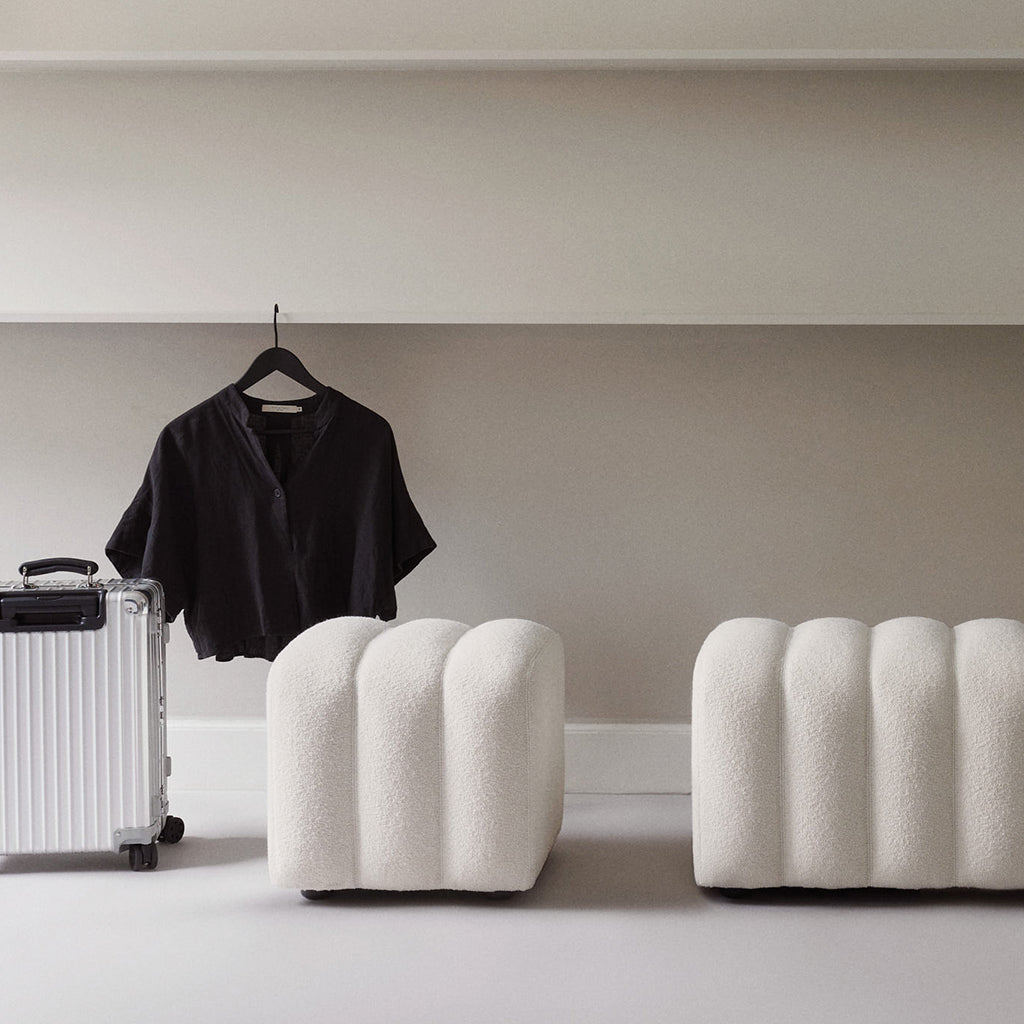 The Studio Pouf features bold fluted upholstery, a signature of the Studio Collection, which draws inspiration from 1970s sunken lounge sofas. This pouf is crafted with a soft foam mix for optimal comfort, making it an ideal addition for extra seating or as a footrest. Upholstered by skilled craftsmen in high-quality fabric or leather, it complements the entire Studio line.