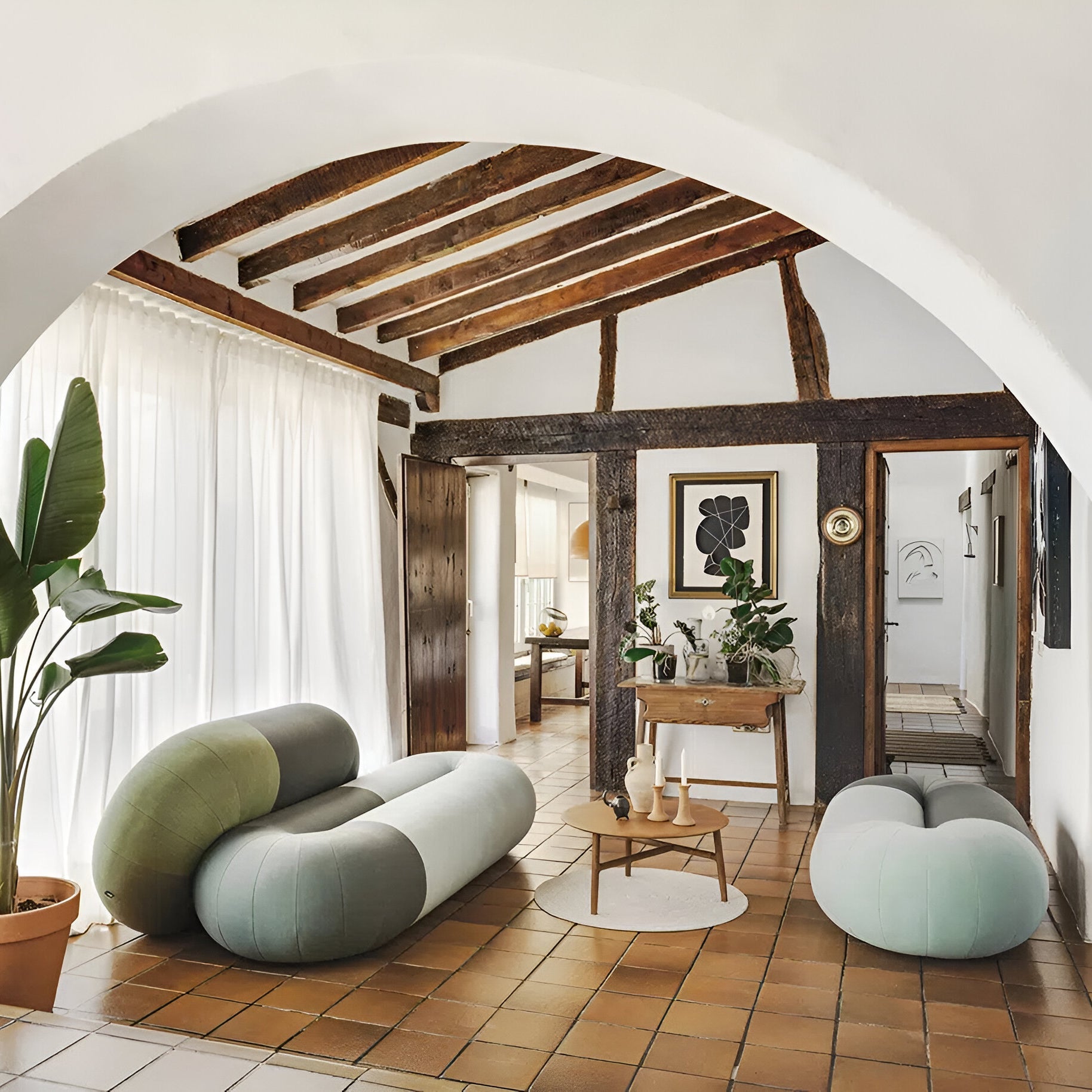 The Loop Pouf showcases gently rounded shapes and vibrant colors, utilizing the Planum textile by Raw Color for Kvadrat. This fabric combines three shades of a single color—reds, yellows, blues, or greens—creating a patchwork effect. Offered in 3 sizes, the pouf adapts to different spaces. Raw Color's expertise in blending light, shadow, color, and volume is evident in this design.
