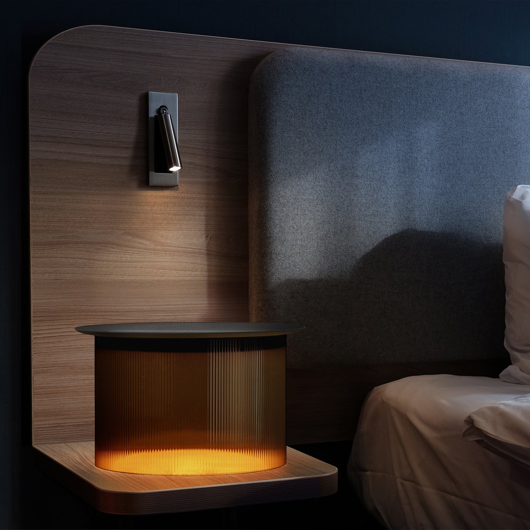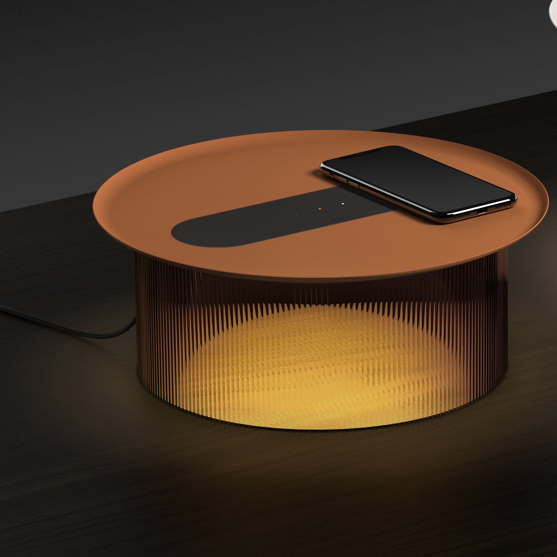 Perfectly suited for desktop or bedside use, Pablo blurs the line in a striking table lamp that combines convenient wireless charging with warm, glare-free illumination. Carousel's top tray surface has dual charging zones plus a USB-C port to accommodate a wide range of mobile devices. Discreetly concealed within, a low-profile LED light module is suspended atop a fluted diffuser base in transparent acrylic that radiates mesmerizing light patterns onto the table surface below.