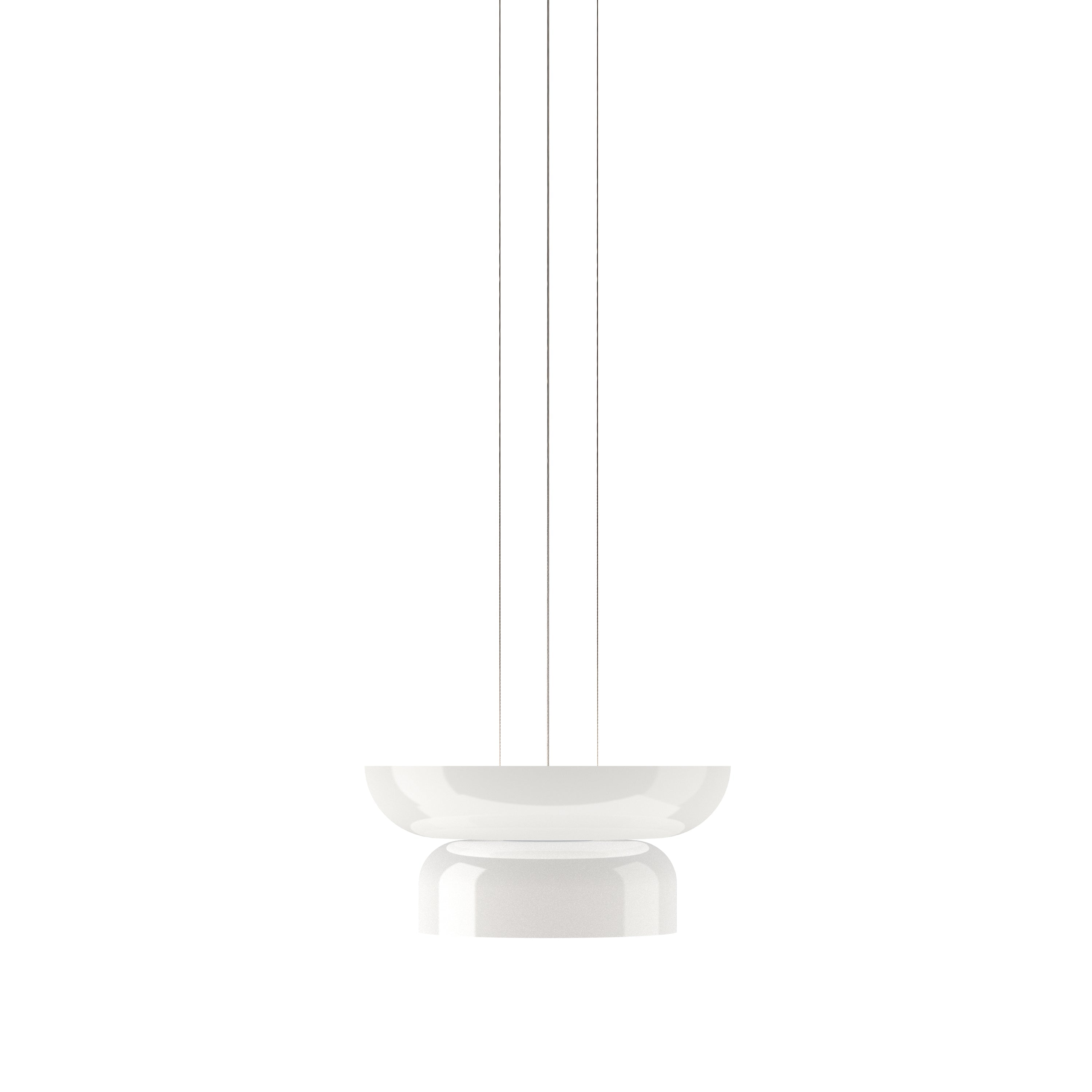 Radiant pure-white forms animate the highly versatile Up-Down version in Pablo Designs' LED lighting system Totem. Exquisite blown opal glass shades in 4 sizes of descending order (A,B,C,D) yield 16 doubled-up pendant variations designed around the modular platform. Each shade houses its own light engine that results in a warm and dimmable ambient glow via the softly diffusing glass structure—creating the option for personalized lighting solutions unique to any given space.