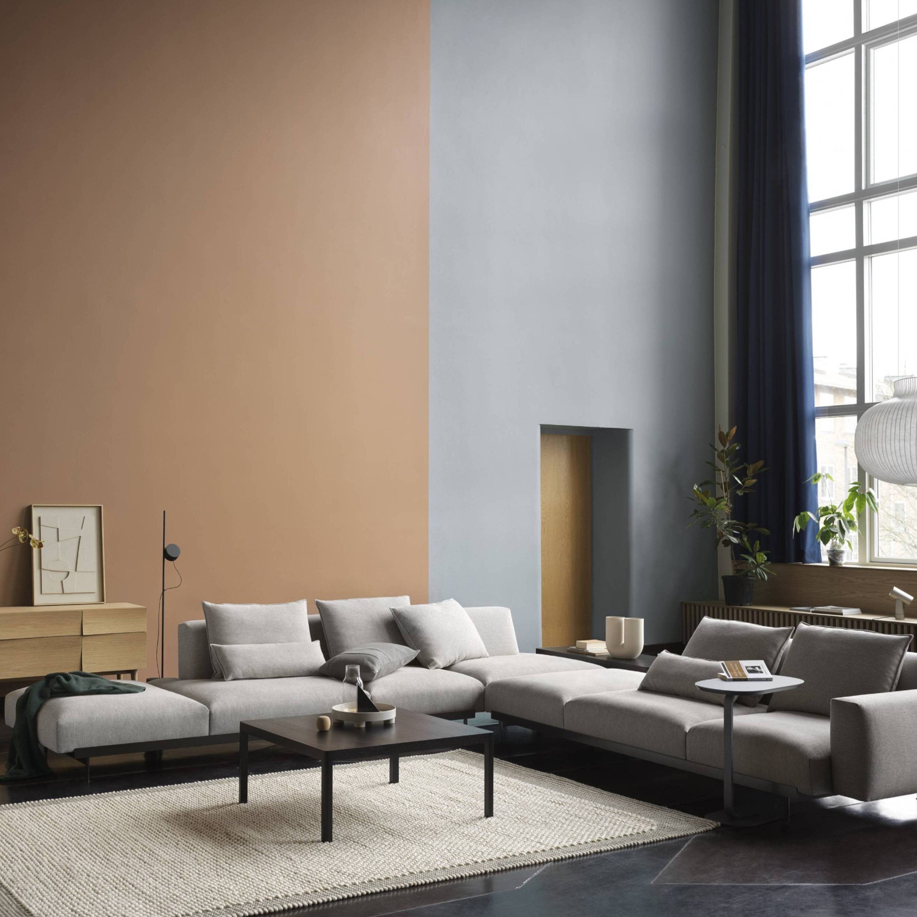 With In Situ, designers Anderssen & Voll say they meld "the grandeur of traditional Italian sofas with the refined simplicity of Scandinavian design." Working with Copenhagen brand Muuto, the Norwegian studio arrived at a distinctive modular scheme, with 30 prearranged configurations based on the 9 different seating styles and 2 loose cushions. A powder-coated steel frame runs along the seat and back of the sofa and visually unifies the separate units. In Situ's crisp profile and deeply comfortable proportions are realized with wood construction and foam, wadding and fiberball fill.