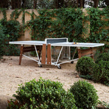RS Barcelona puts on its game face with a newfound design-worthy appeal. Designer Rafael Rodríguez unveils his RS Folding, an easily collapsible ping-pong table with all-terrain wheels for use indoors and out. Game's on with regulation standard ping-pong measurements. Steel-constructed table with a tough polyester finish, high-density laminate playing surface and handsome iroko wood leg detail.