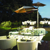 Stainless steel, cast aluminum, iroko wood, tempered glass, HPL, powder-coated polyester