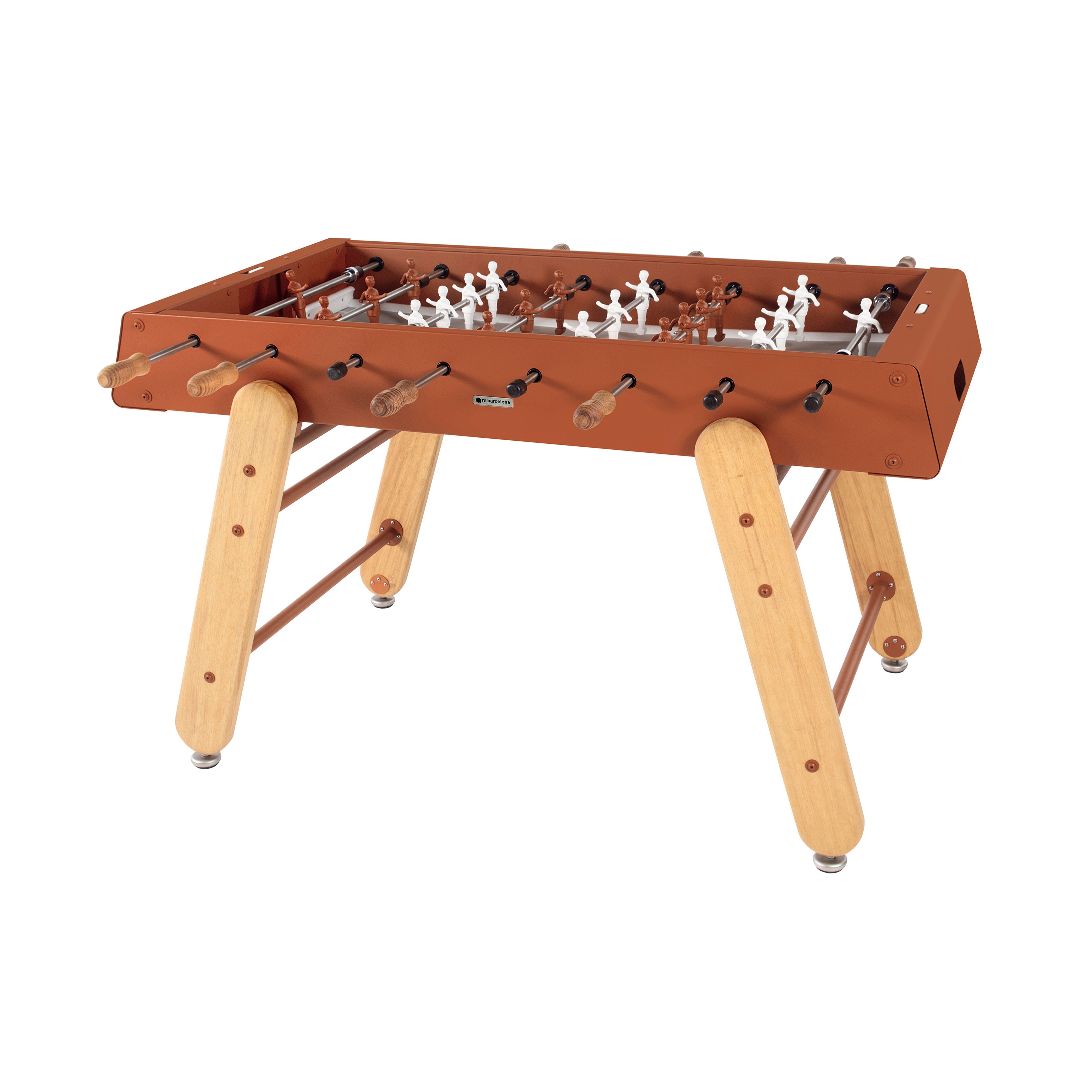 Home is where the RS4 scores. Because this latest model in the RS Barcelona range ships flat-packed and is configured for home assembly (1-2 hours) it’s priced lower than its counterpart tables—so no time like now to strike. Flat-packed means a smaller carbon footprint, too, when it comes to shipping and relocating. Rafael Rodriguez’s compact football table specially designed for residential settings and lets the good times roll indoors or out.
