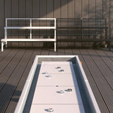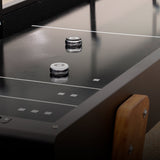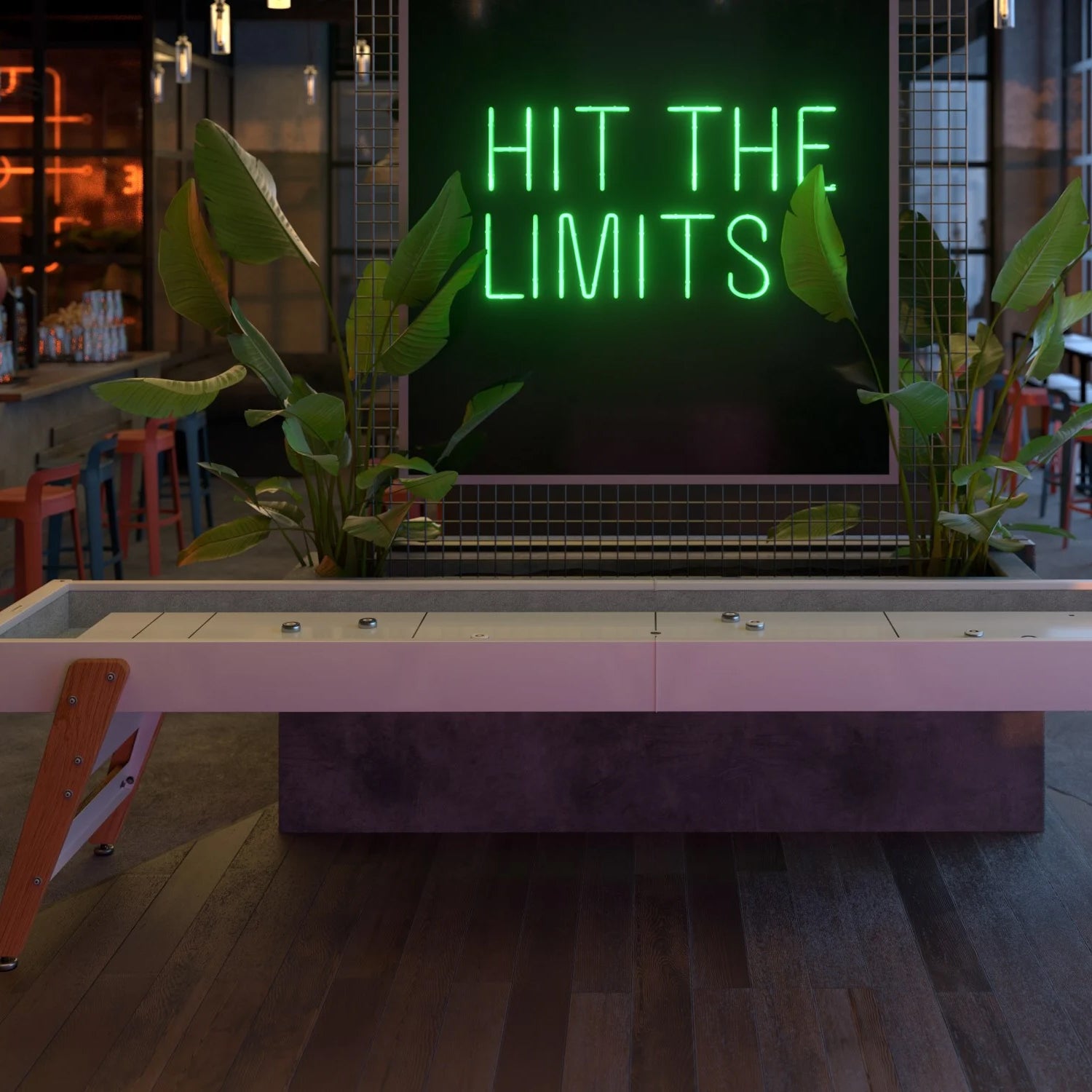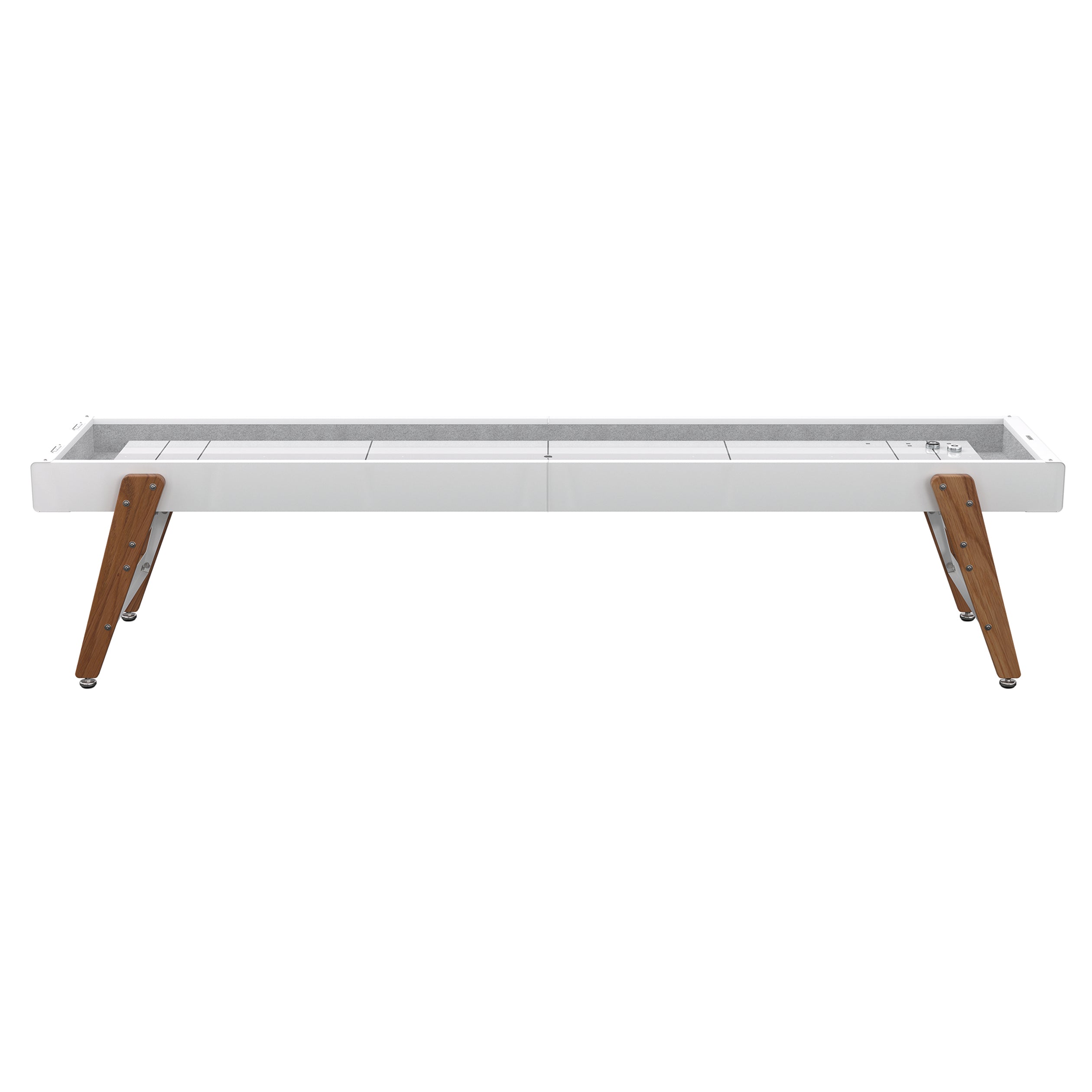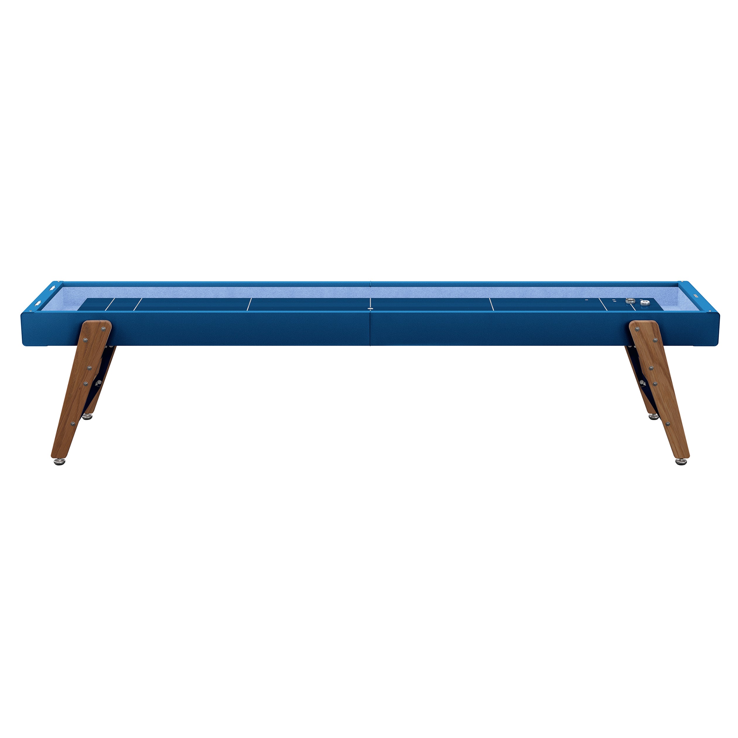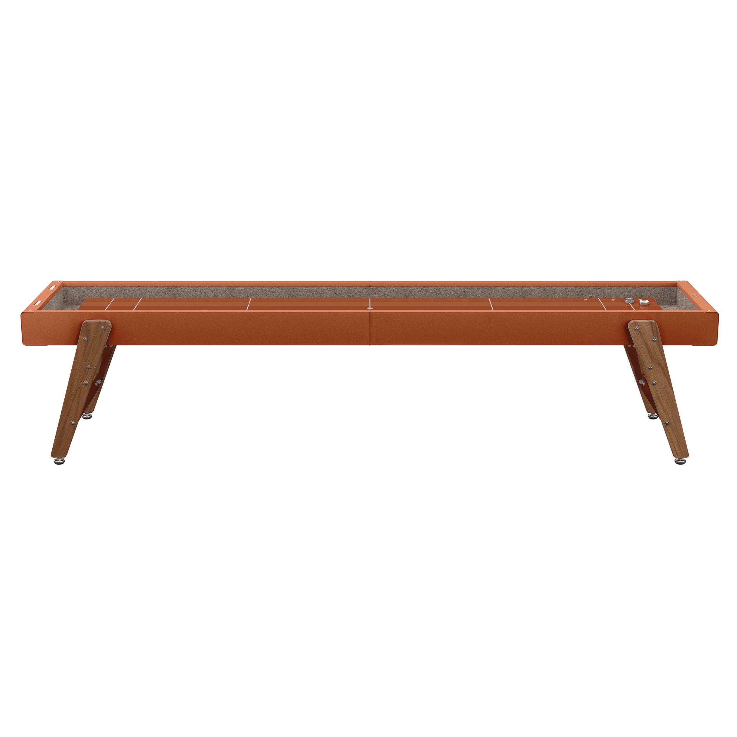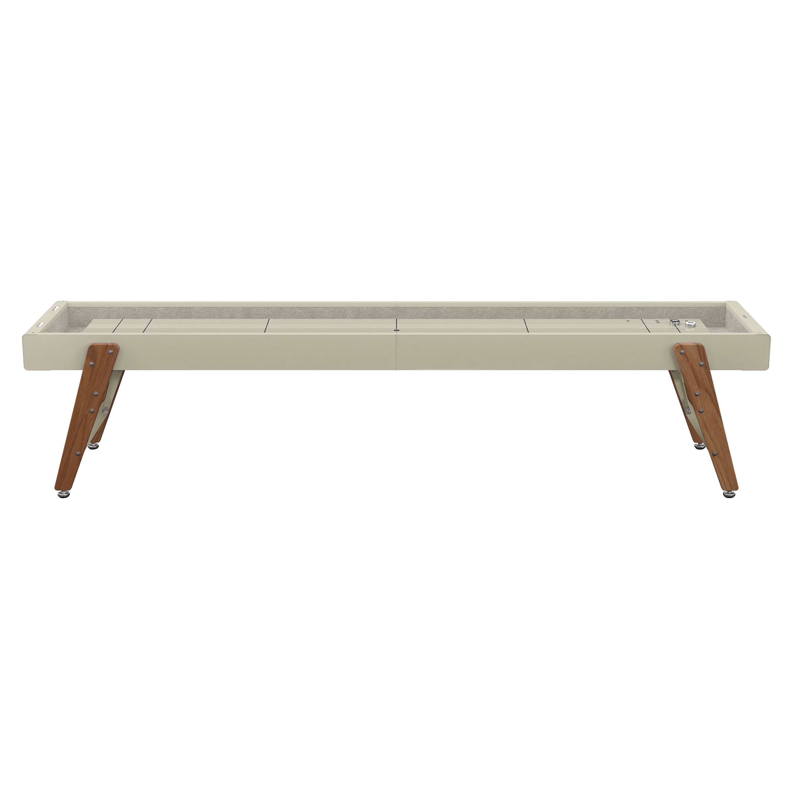 Track brings designer Rafael Rodríguez' sleek sensibility to the classic shuffleboard game, in a steel table with sustainably sourced iroko wood legs. In 2 sizes to match the dimensions of an indoor or covered outdoor space, it’s finished with a cataphoretic process and durable final powder coat in a choice of hues with an epoxy-resin playing field.