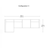 - Configurations 11: 26.4" h x 149.6" w x 53.1" d (67.1x380x135cm)