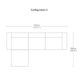 - Configurations 3: 26.4" h x 125.9" w x 70.9" d (67.1x320x180cm)