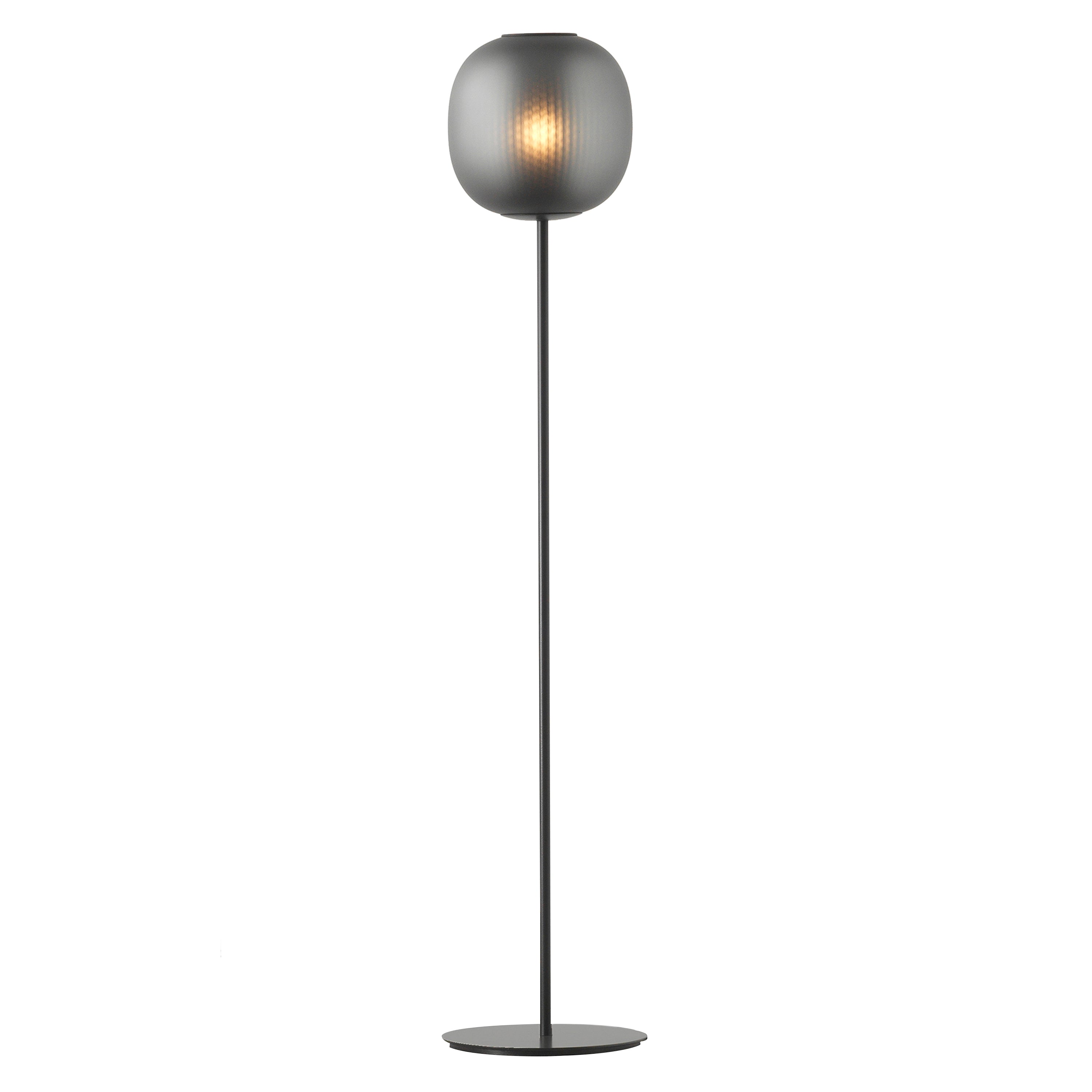 London-based industrial designer Tim Rundle provides a sophisticated take on the prosaic paper lantern with his eye-catching floor lamp. The glorious effect of Bloom’s illumination comes from a layering of materials—a finely perforated mesh core and the frosted blown glass shade. Together they combine to project a mottled texture onto the inside of the shade that contrasts smartly with the matte-black floor stand.