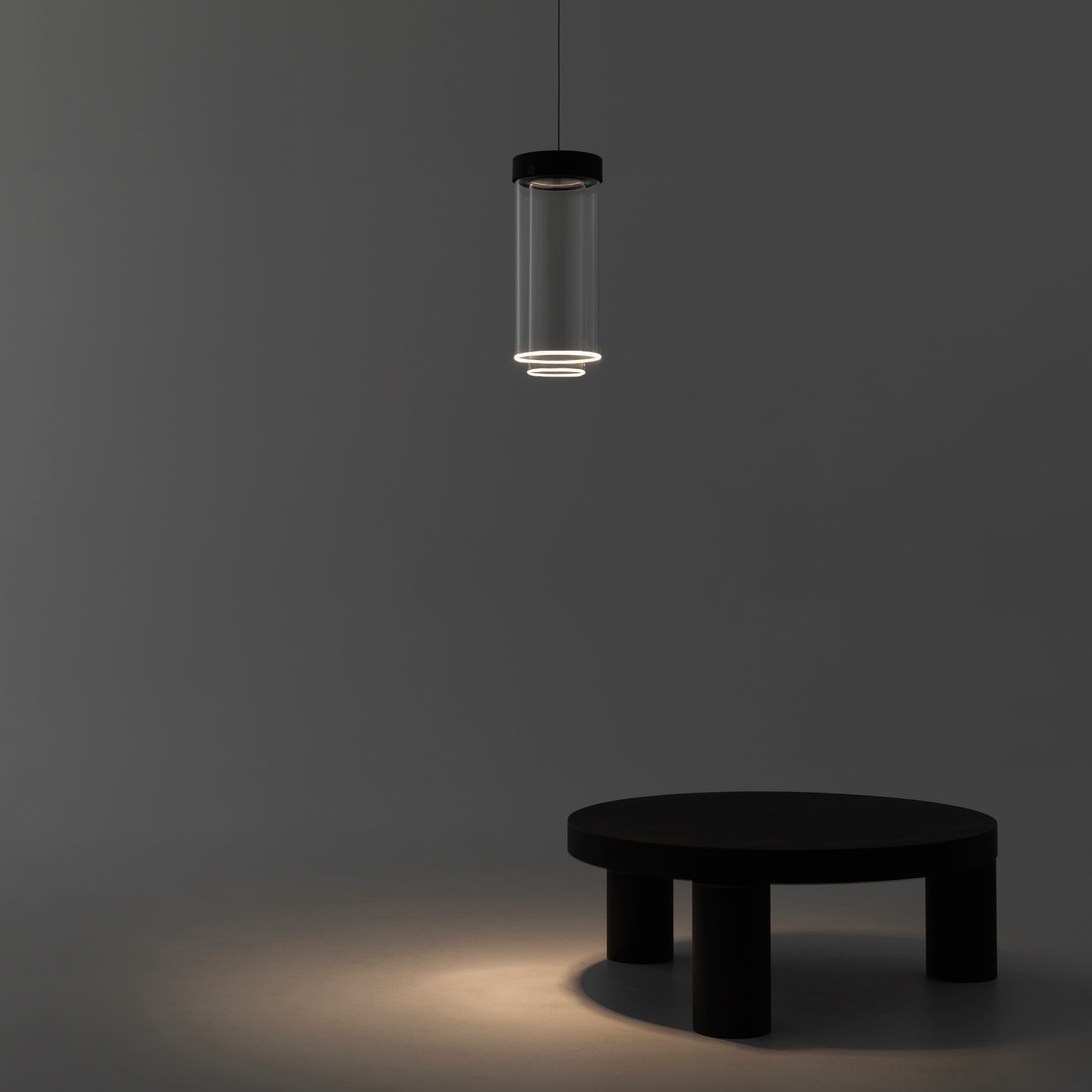 Much like its namesake, Ghost takes an identifiable form but it appears as an apparition given the layering of its 2 translucent tubes and a hidden LED light source. The pendant is made of borosilicate glass with a high optical quality that is both virtually transparent as well as scratch-resistant. Warm radiance projects invisibly through the glass to spectacularly illuminate the bottom edges with a delicate visual interplay yet creating a strong source of light for the space below.