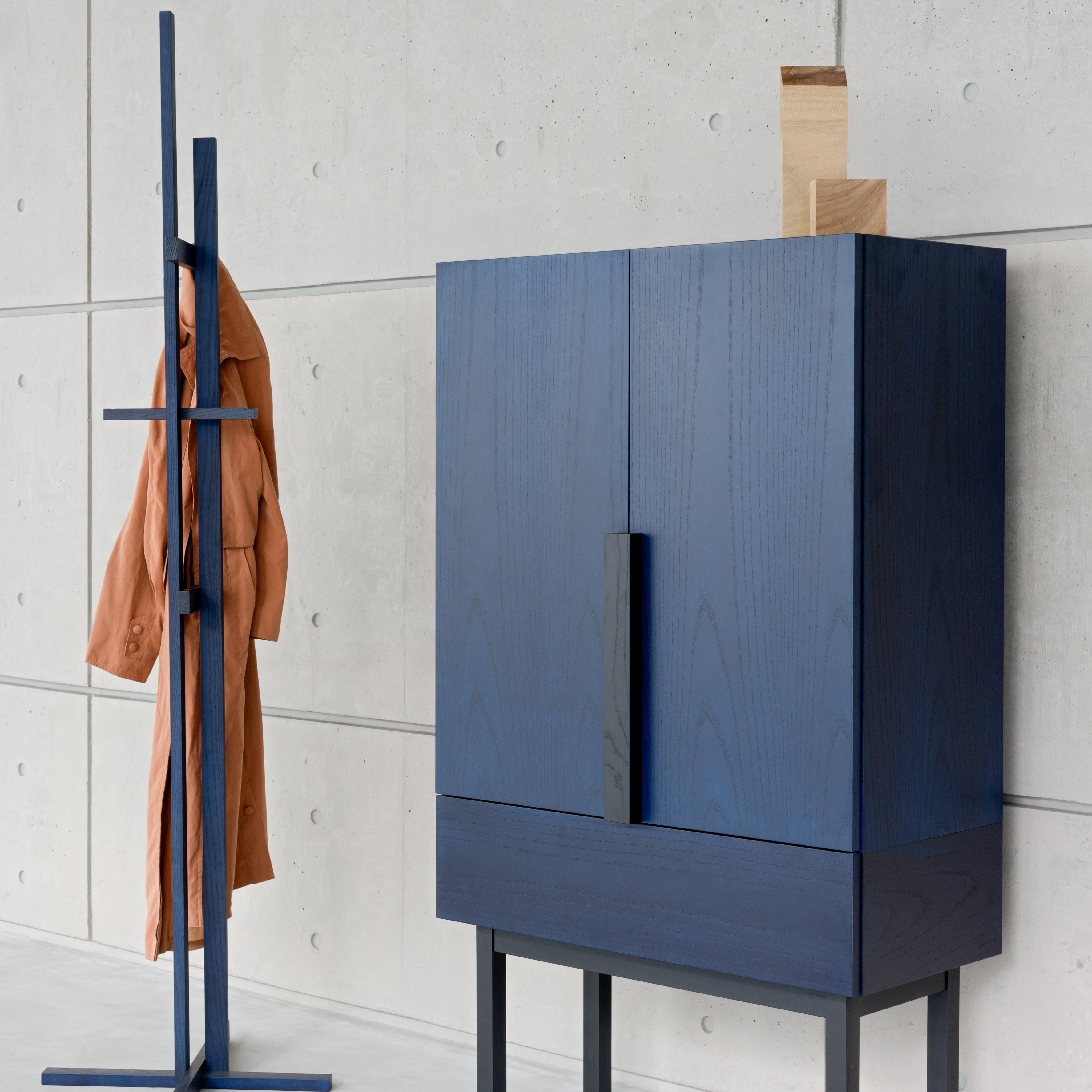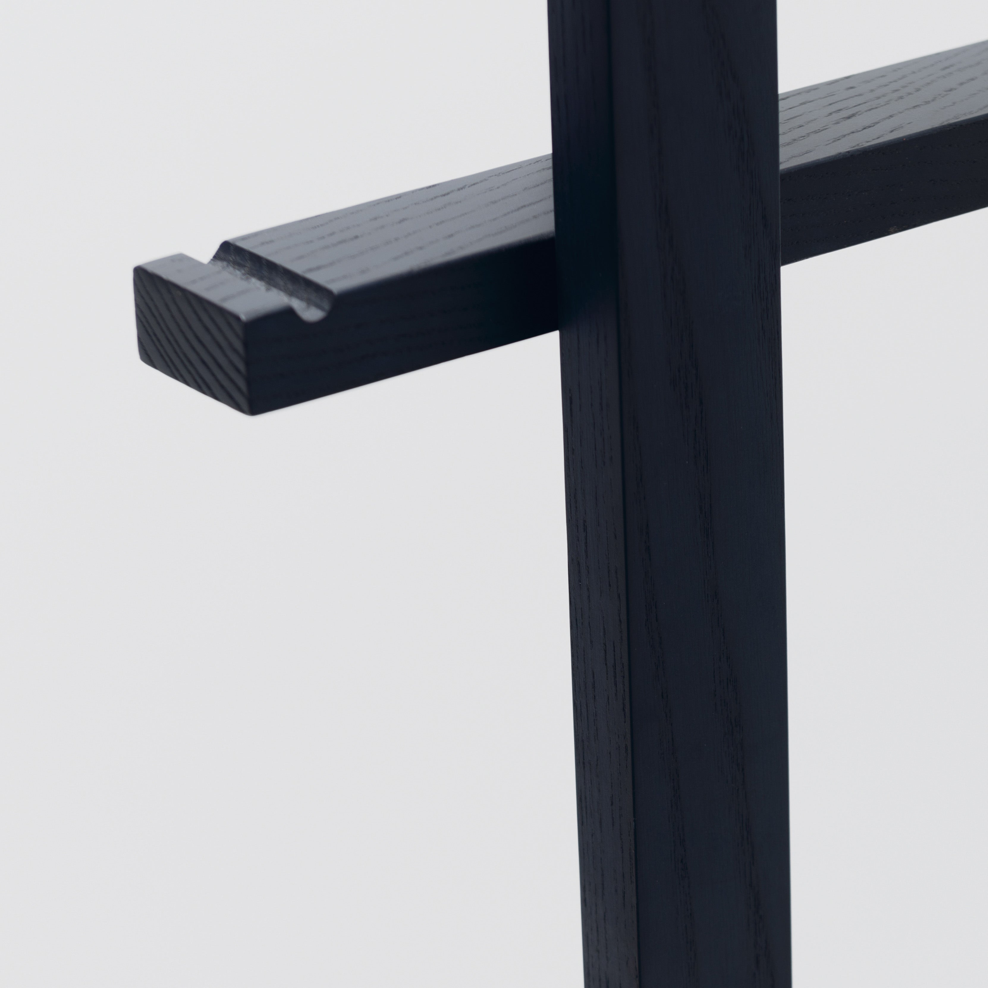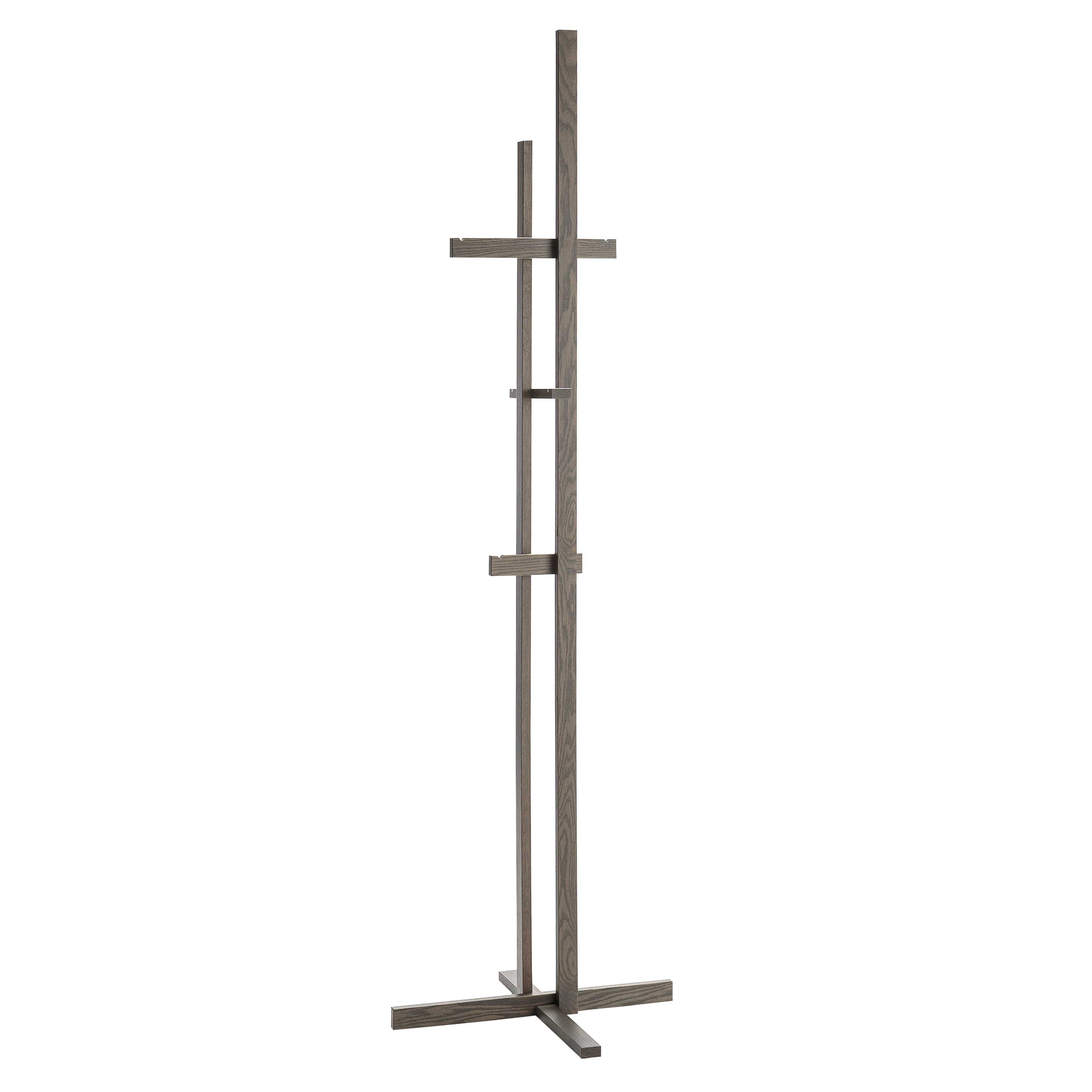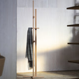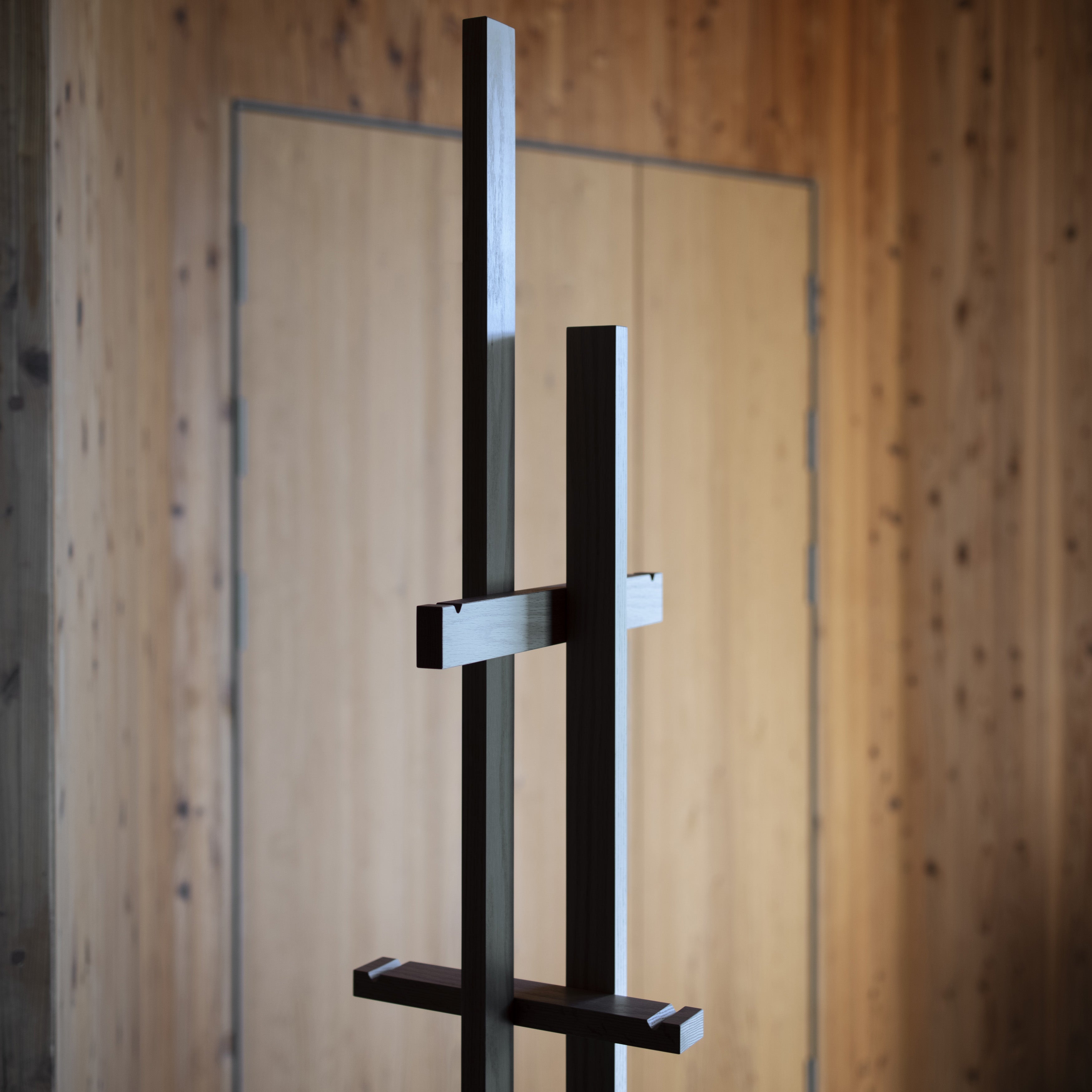 The Elements Coat Stand is a functional sculpture made from a single type of timber in varying lengths. Its unique construction features joints at different angles, allowing the stand to change its appearance based on the viewing angle. Designed with a "face side" for hanging more clothes and a "back side" to face the wall, it is both practical and artistic. Available in 5 finsihes of oak or ash.