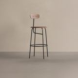 Find exceptional comfort with the Afteroom Bar and Counter Chair, featuring a wide wood veneer backrest and a generously upholstered seat. Designed by the Stockholm-based Afteroom Studio, this chair reflects their dedication to creating timeless products that gain value over time. Its minimalist design, characterized by clean lines and a sturdy powder-coated steel frame, ensures long-lasting durability.