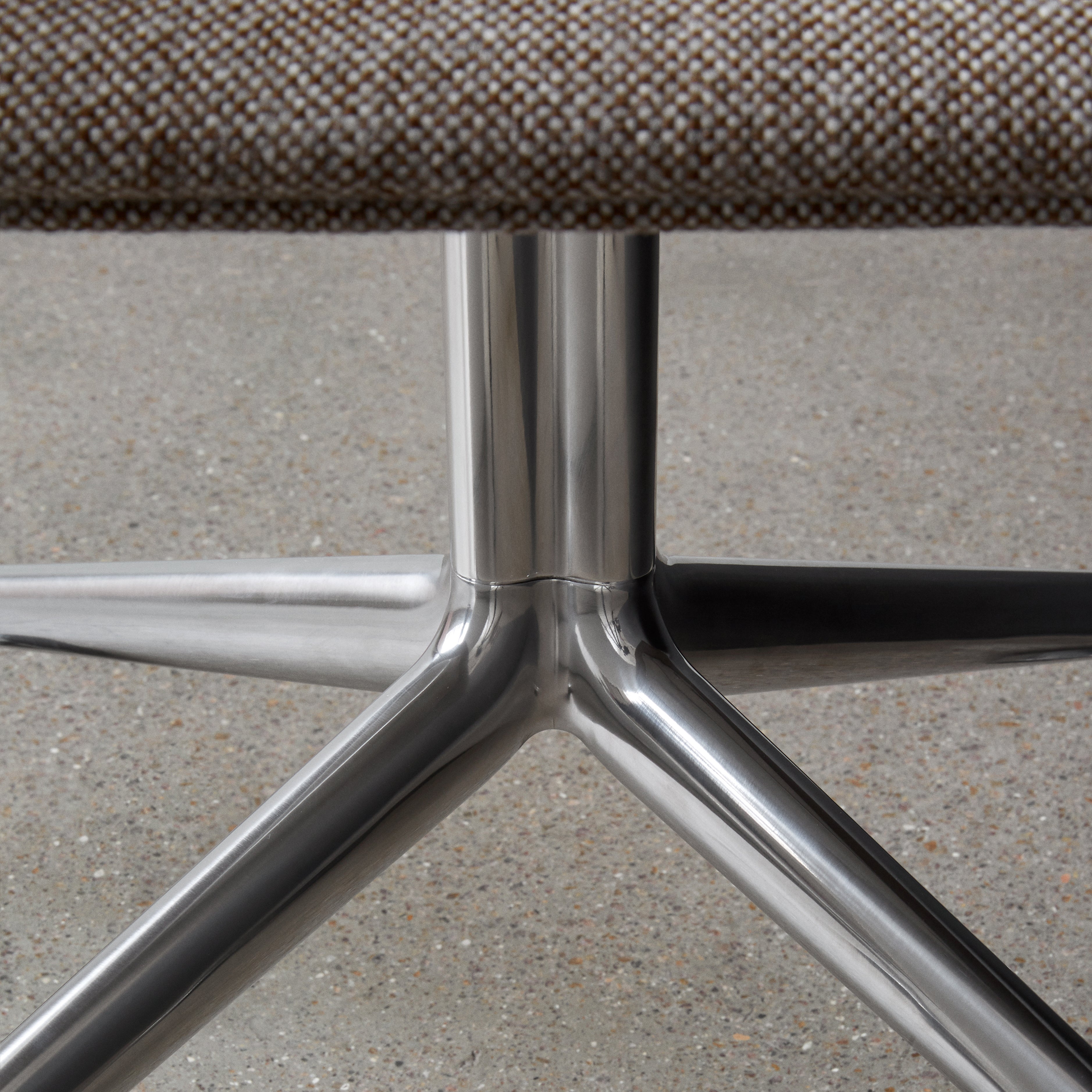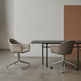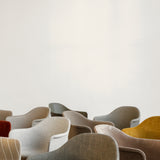 Clad in fine upholstery and with a sleek swivel base, it's easy to picture this Harbour model in a restaurant, desk-side or in the comfort of home. Originally designed for multipurpose use at The Audo in Copenhagen’s thriving Nordhavn port area, the organic shell shape strikes a perfect balance between geometry and comfort, with the armrests bending outwards for ease and a high back for lumbar support.