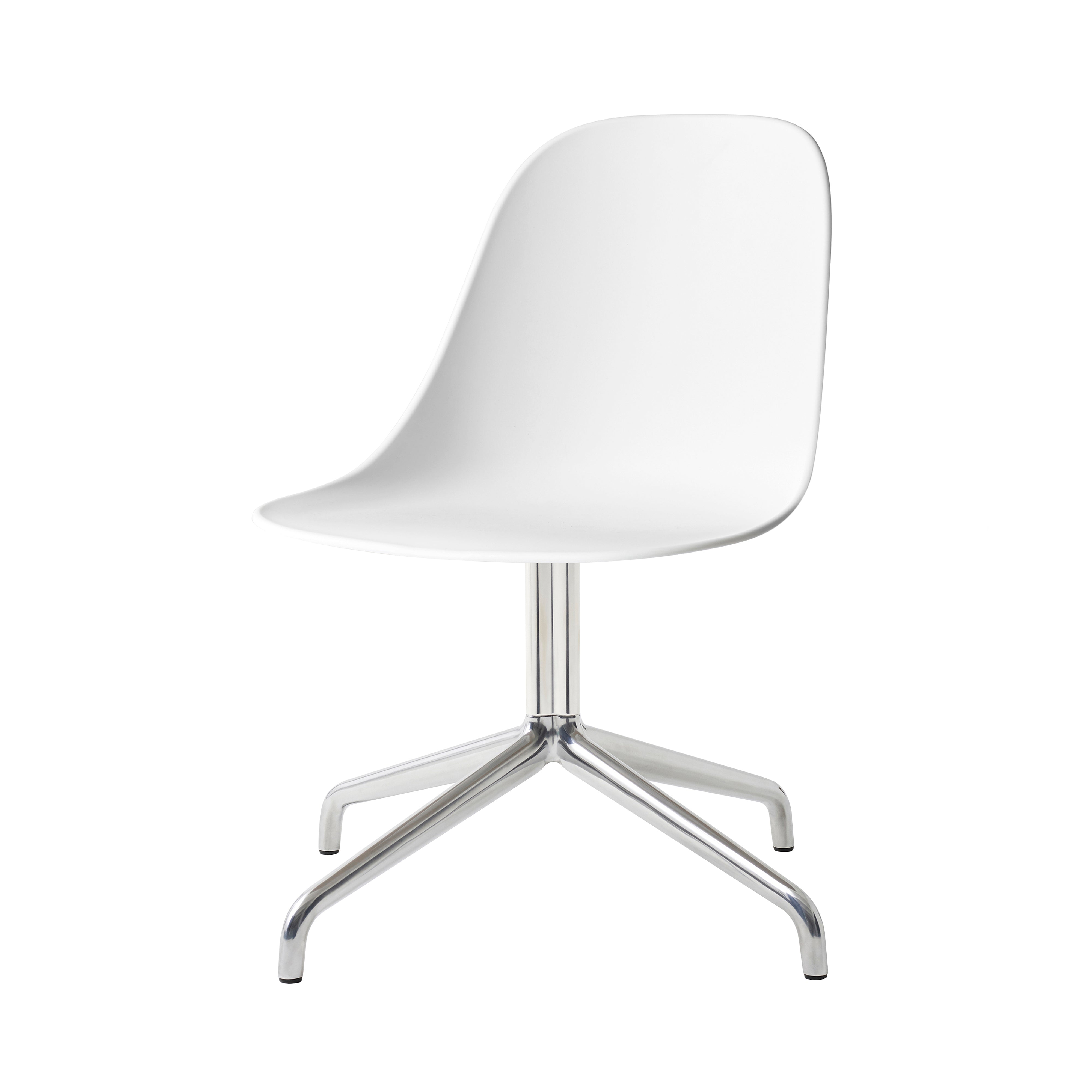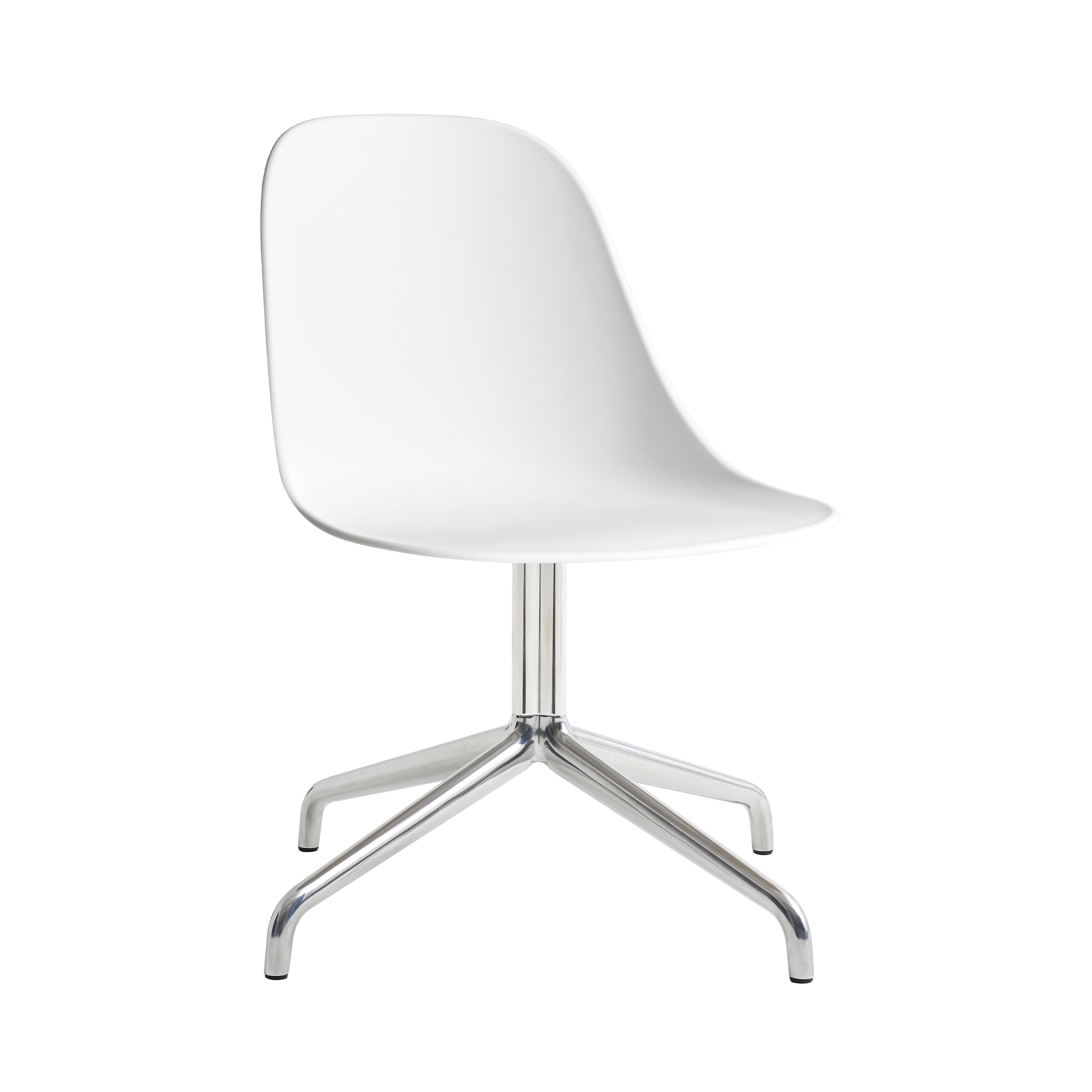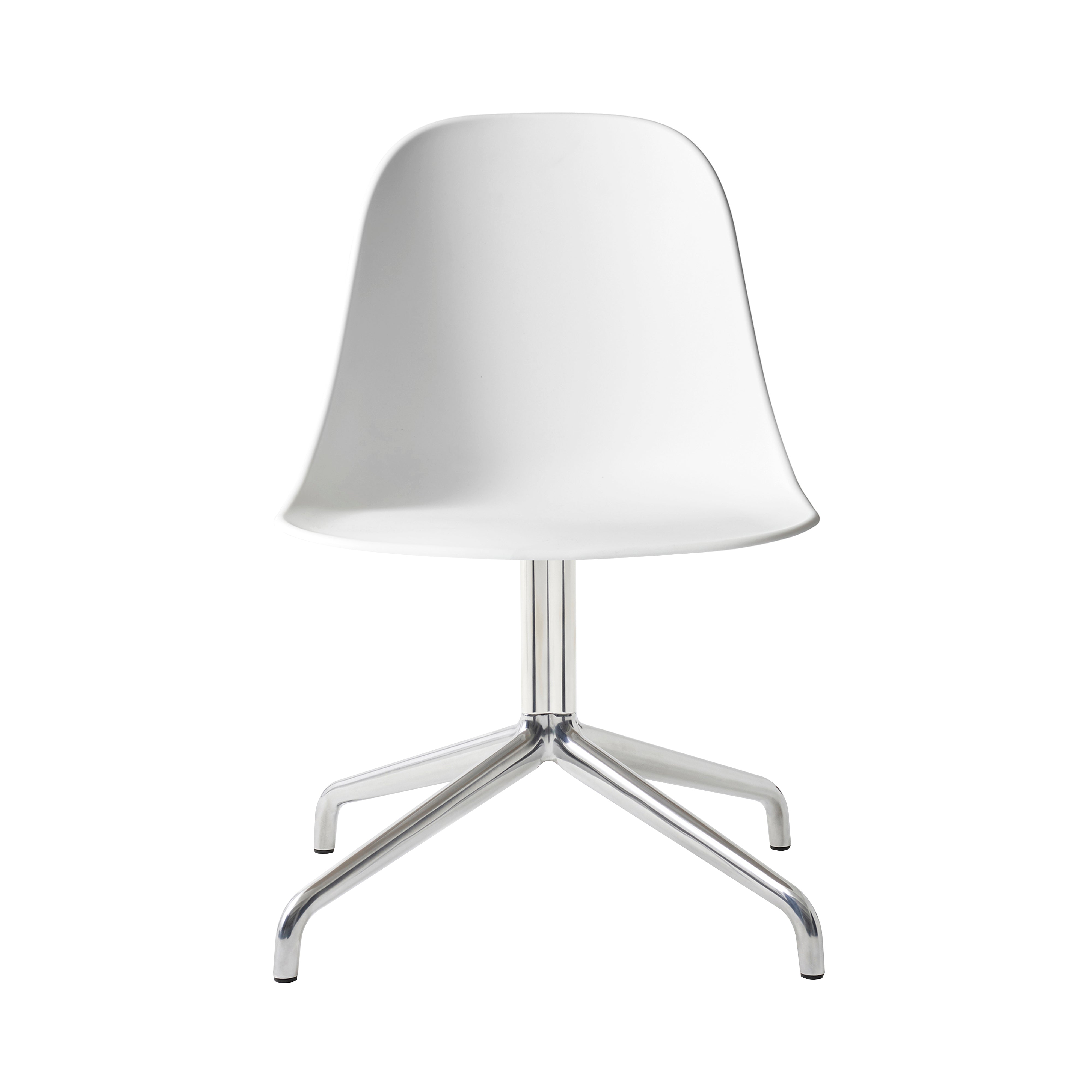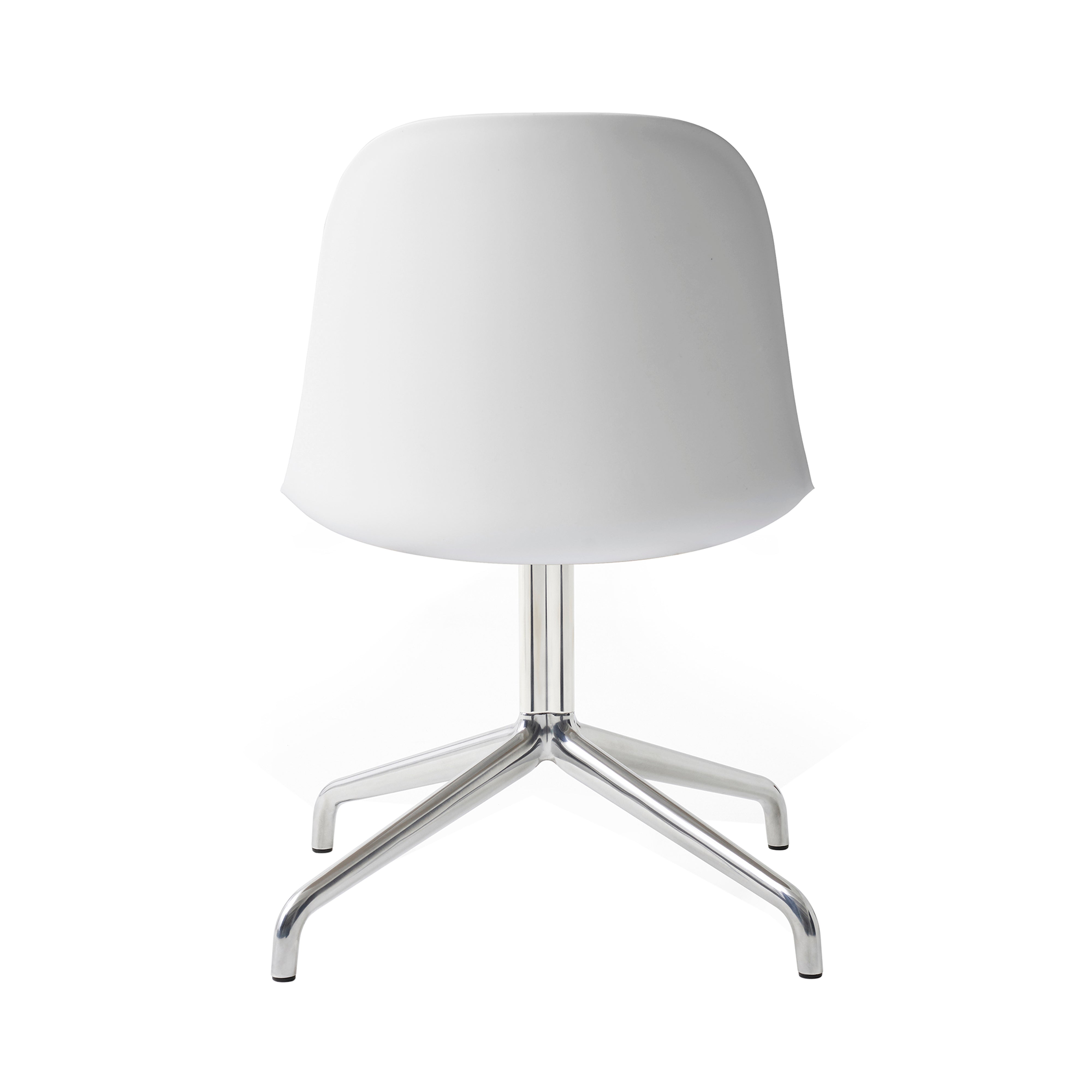 Harbour’s shell seat fits easily into compact spaces and under tables. Shaped with comfort in mind, the side chair offers optimal lumbar support and the unique clover-shaped swivel base makes turning around effortless. Molded seat available in a selection of smart colors to suit home or office and the base is offered in 3 finishes—polished aluminum or powder-coated aluminum in black and light grey.
