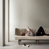 Designed in 1936 for Denmark’s Radio House (today the Royal Danish Academy of Music), Vilhelm Lauritzen's exquisite Radiohus Sofa rightfully takes its place in Audo Copenhagen's select Icons grouping. 3-seater model, the hand-upholstered winged form finished with exacting rows of buttons cradles the body in stylish comfort in this singular reissue.