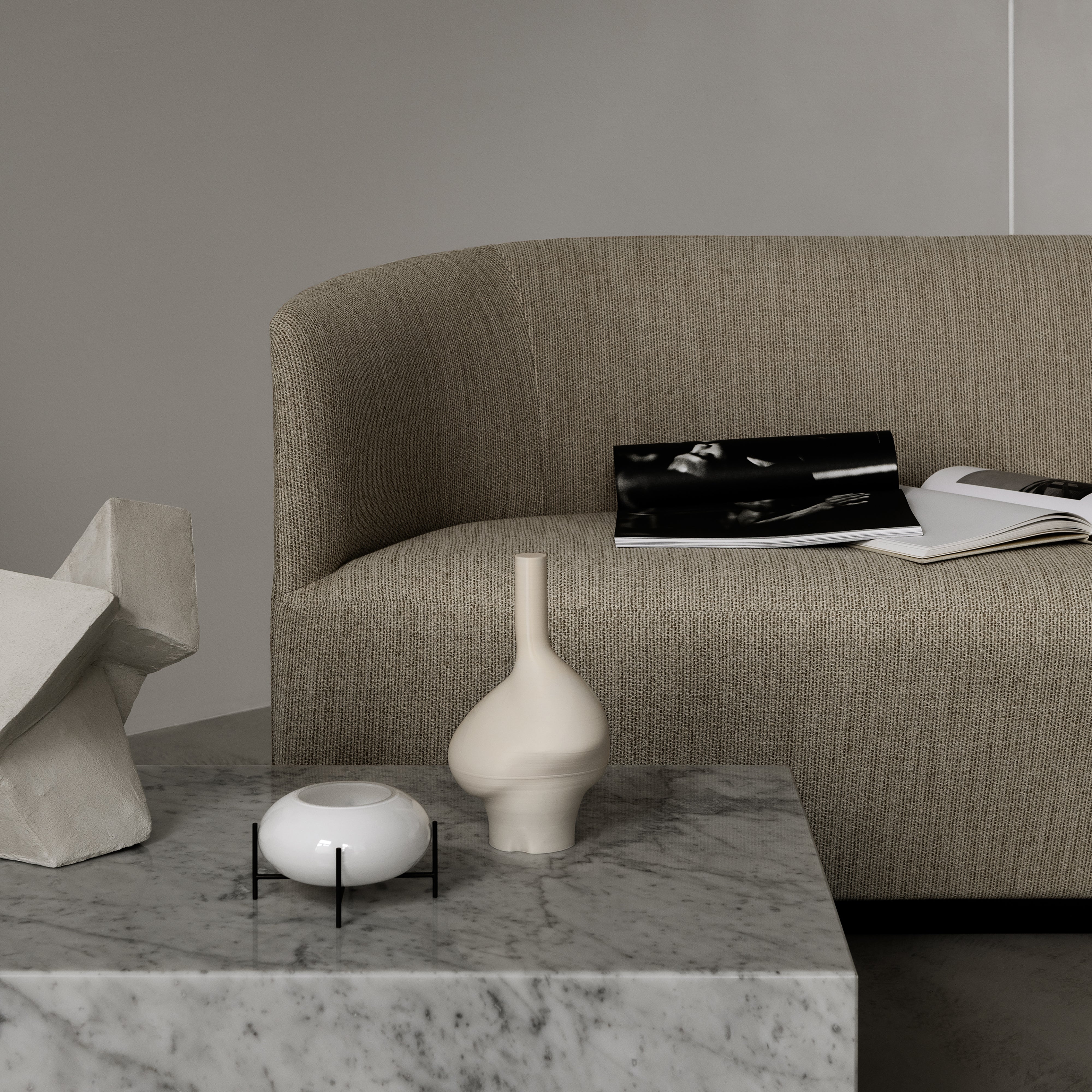 Tearoom pairs the luxurious feel of a fully upholstered sofa with a dramatic curved expanse. Scottish-born, Stockholm-based designer Nick Ross prioritizes comfort with beckoning contours grounded in wood and foam interior construction for unequaled sturdiness and ease. The sculptural form ultimately suits both period and contemporary environs with its timeless appeal.