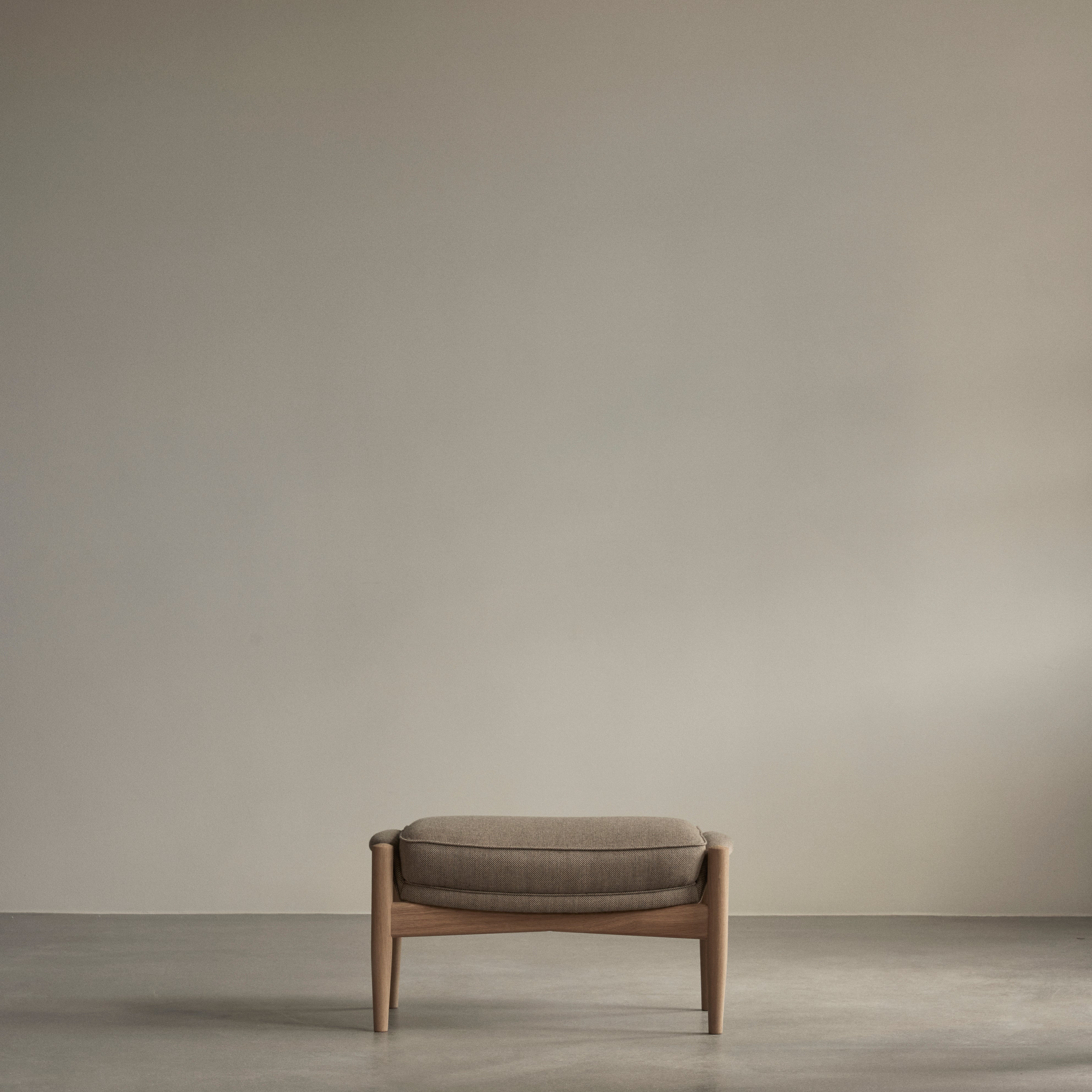 A companion piece to far-thinking Danish Modern pioneer Ib Kofod-Larsen’s timeless 1952 lounge chair, The Seal collection also includes a well-scaled ottoman. Displaying the same attention to detail, comfort and organic form that have made the designer such a revered figure in his native country and beyond, it's rendered in solid oak or walnut with a choice of fine aniline leather or fabric upholstery.