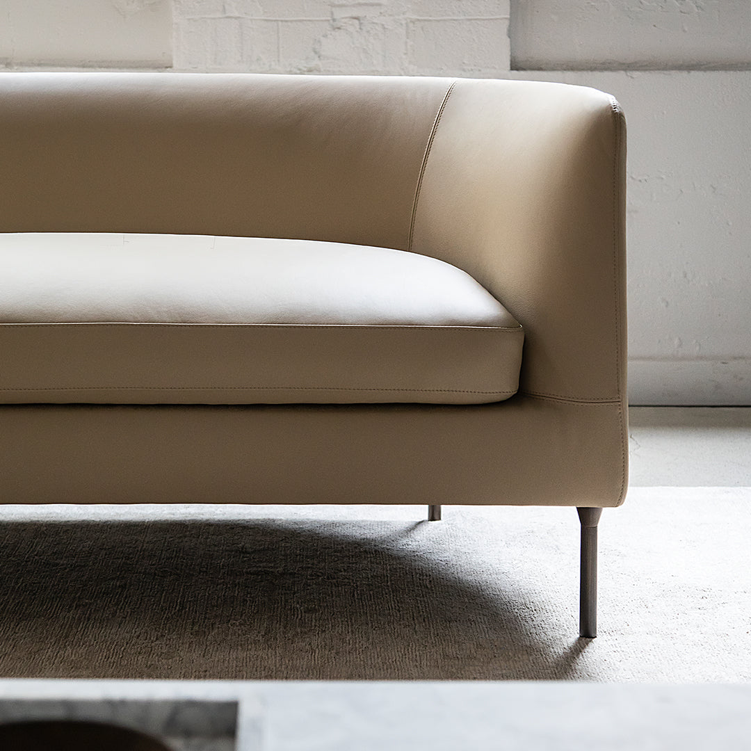 Delta 210 is a generous 2-seater that works as a standalone sofa or as part of a sectional. Typified by its fresh look with smooth surfaces and soft, down-filled cushions, the comfort of the sofa is created through multi-layer seat cushions on a webbed frame. The large back cushions leave space to get creative with smaller matching throw-pillows. And the built-in steel frame with recessed legs allows for corner or inset foot placement.