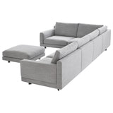 Just as the collection's sectional comes in a choice of seat depths, Elle's companion ottoman is available in 2 sizes, Standard or Deep. Top cushion is engineered with a layered foam core and wrapped in a generous amount of feathers and down. Fabric cover attached by velcro and easily removable for cleaning or replacement.