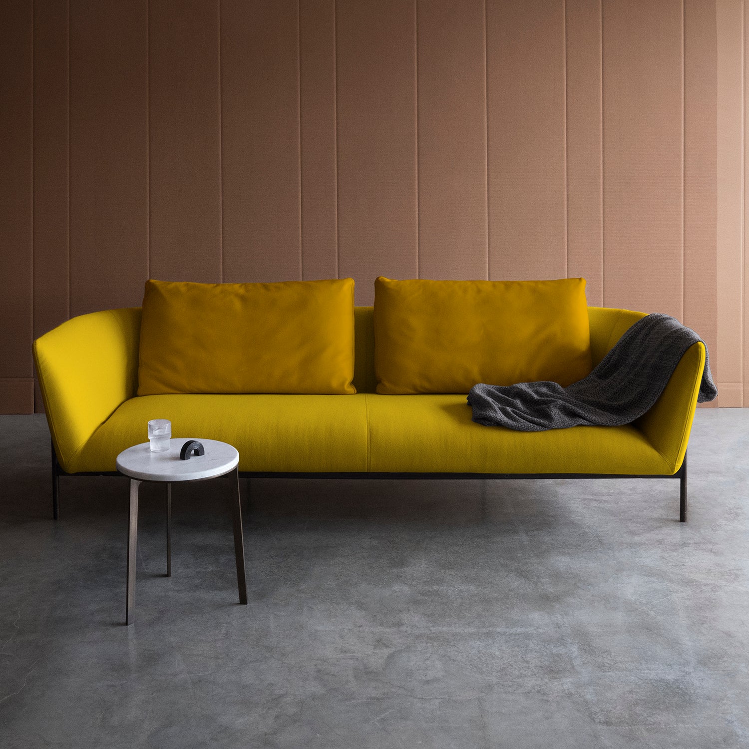 Loft throws a handsome curve into a space, be it residential or a contract setting. With cleanly tailored lines and the simplicity of the integrated seat cushion, the sofa is inviting and engineered for comfort. Destined to be a new classic, the design floats on metal legs in either chrome or bronzato. And a choice of optional back cushions adds a dash of extra personality.