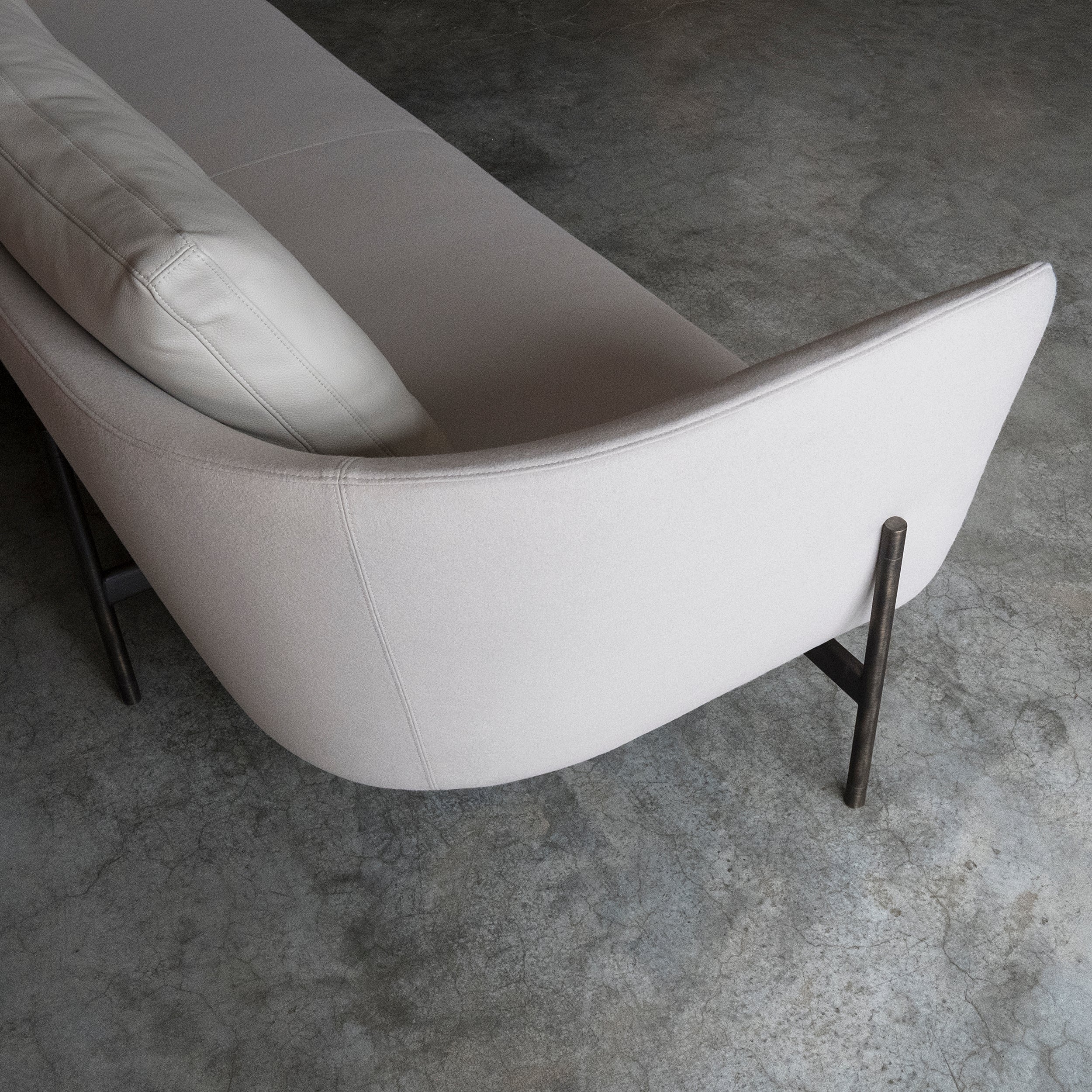 Appearing almost to float above the floor on its slim metal frame, Loft beckons with an embracing curve. The midsize 250 has a clean-lined appearance with an integrated seat design and squishy down-filled back cushions. Metal legs in a choice of chrome, black or bronzato finish extend the sofa’s streamlined appeal.