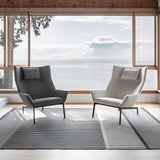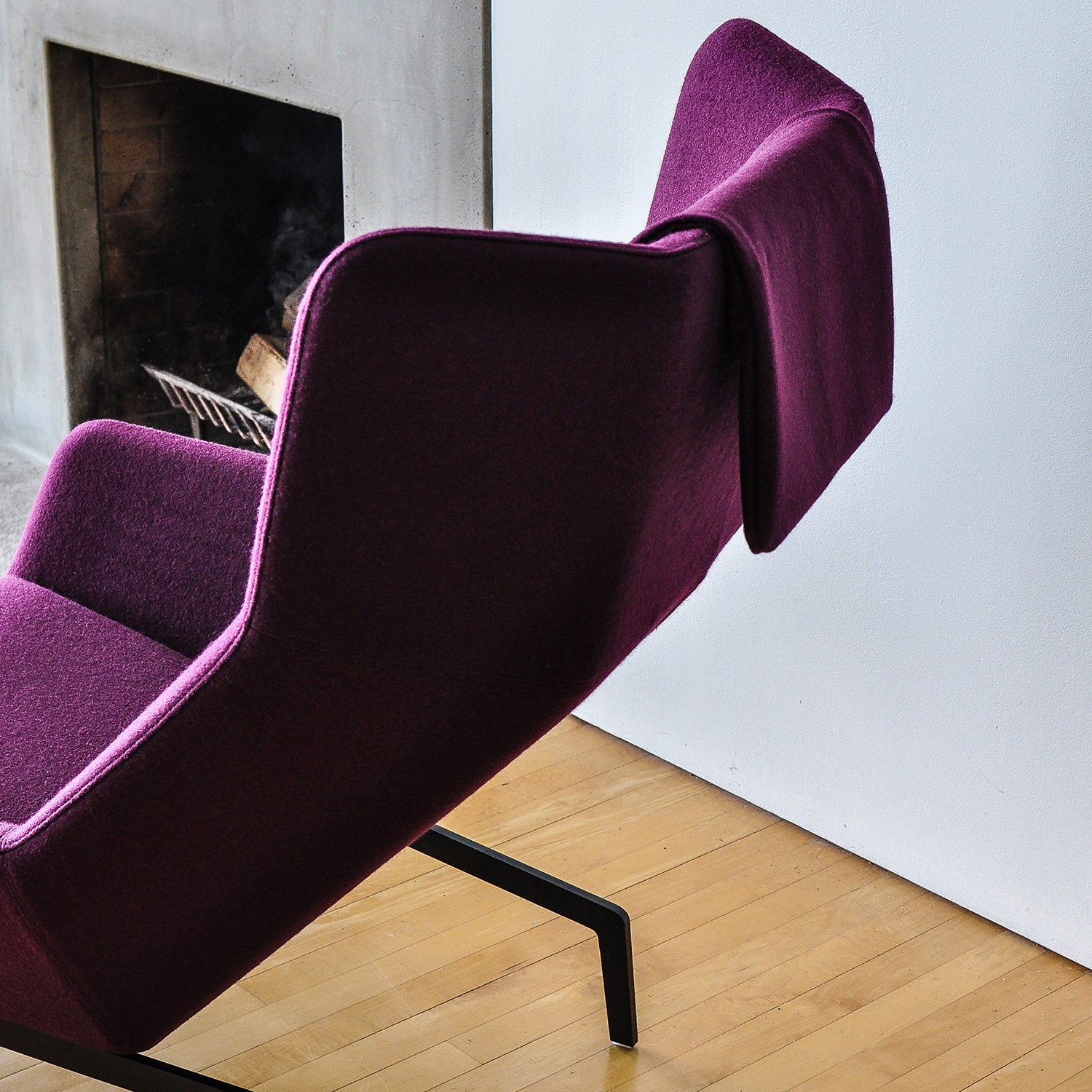 Park updates the classic wing chair with sleek lines and contemporary proportions while retaining the original's sense of retreat and sheltering comfort. Striking from any angle, the innovative molded-foam body is engineered with an internal frame laced with elastic webbing so the whole chair can flex and adapt to the sitter. A satin-finish steel base echoes the modern feel. Slip-cover upholstery allows for easy removal yet is sharply tailored and meticulously fitted with concealed zippers.