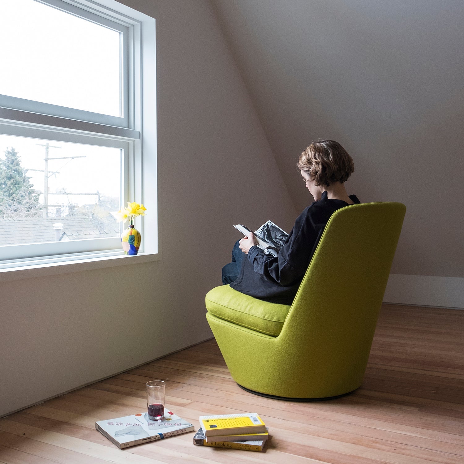 Pre takes its inspiration from the time-honored slipper chair but propels it firmly into the modernist idiom via a swivel base. Like the other models in Bensen's U Turn family, the chair rotates 360 degrees with its smooth internal mechanism. A tapered silhouette and undercut base assure an easy versatility to this contemporary rethink on tradition.