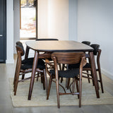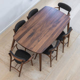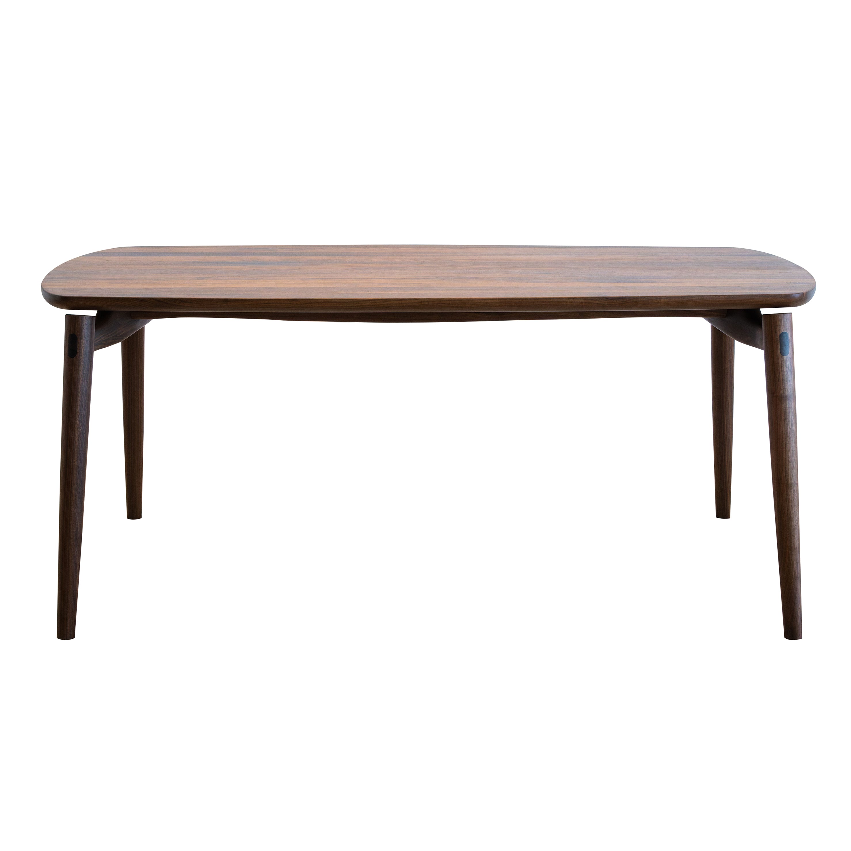 The Fjoon Dining Table is a handcrafted piece made from solid domestic hardwoods, designed to create an open and airy feel in your space. Its legs are subtly angled outward, and the base structure is crafted to maintain a light and balanced appearance. Made to order in Bend, Oregon, each table is tailored to individual specifications, ensuring a one-of-a-kind creation. Finished with a VOC-free coating.