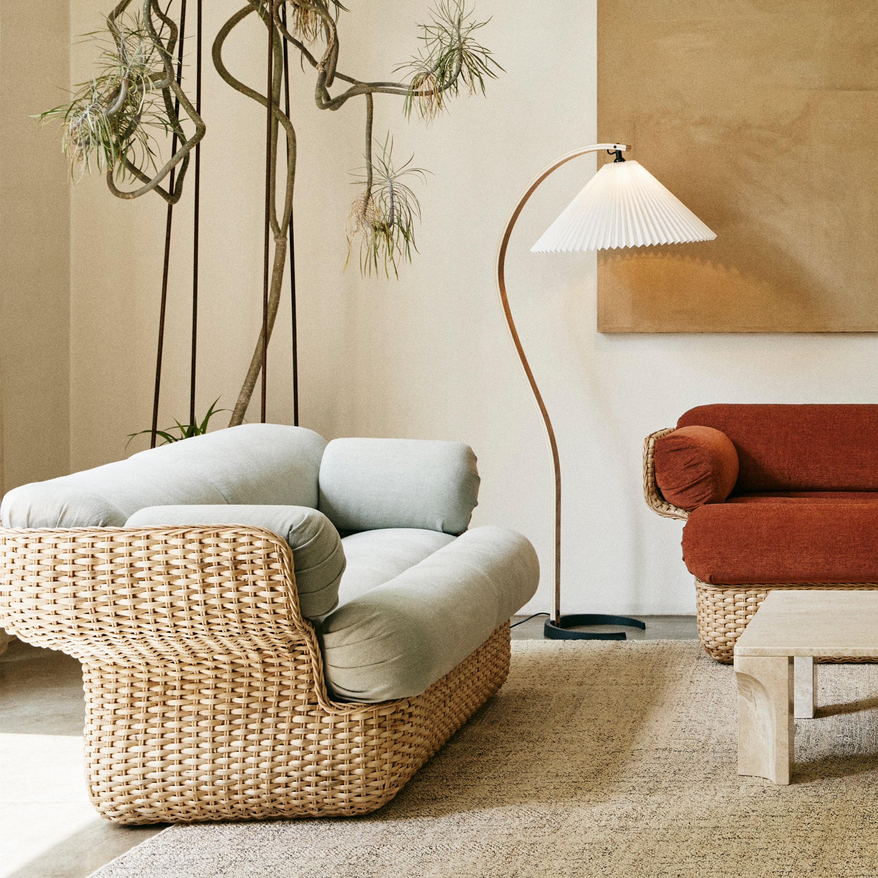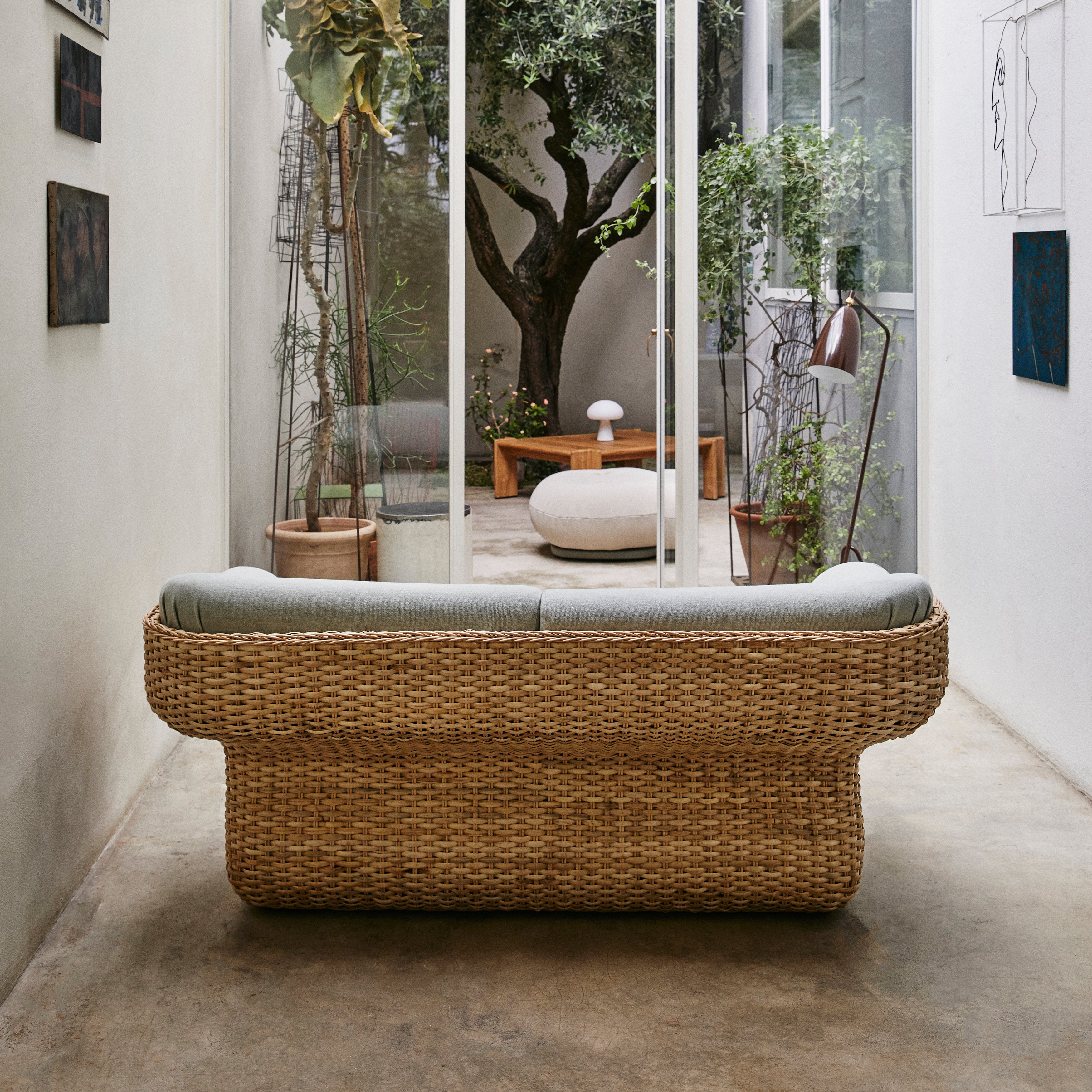 With its signature stepped silhouette and handwoven rattan surface, Italian design maestro Joe Colombo’s Basket series includes a cozily scaled 2 seater. Though best known for his futuristic plastic furniture, Colombo quite persuasively departed from form in this exceptionally well-crafted sofa, with its rattan “skin” placed over a skeleton made from environmentally responsible steel to give the piece strength and stability. Appealingly deep upholstered cushions exude a promise of comfort, with bespoke coverings available in a range of fine materials.