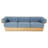 A spacious 3 seater fills out Gubi’s series first introduced by ‘60s Italian designer Joe Colombo in a turnabout from his futuristic plastic furniture. Basket retains his spirit of innovation but interpreted with an update on traditional hand-woven rattan and skillfully manipulated over the sofa structure made from environmentally responsible steel for strength and stability. Custom upholstery for the luxuriously deep cushions is available in a range of fine materials to complement the inviting sense of comfort.