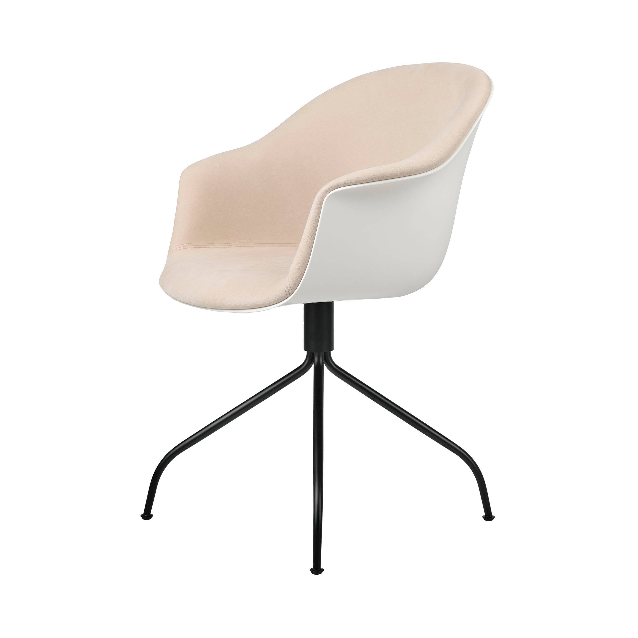Bat Meeting Chair: Swivel Base + Front Upholstery + Alabaster White + Black Matt