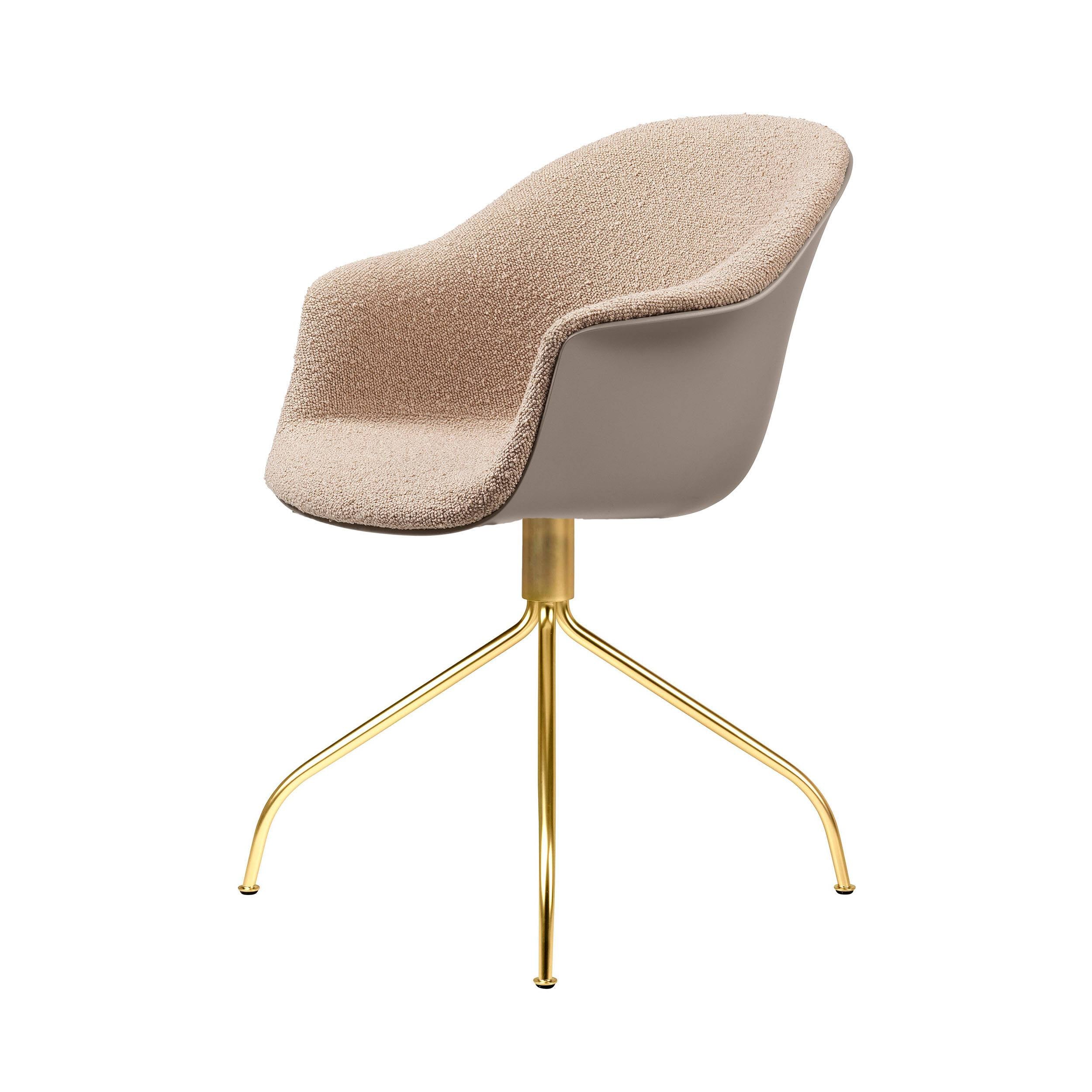 Bat Meeting Chair: Swivel Base + Front Upholstery + Alabaster White + Brass Semi Matt