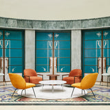 With its attenuated conic base in matte black, chrome or brass finish, the fully upholstered version of Beetle Lounge Chair combines high style and relaxed comfort. Employing gentle references, design duo GamFratesi reveals inspiration from the collection's namesake, a common garden insect. In luxurious fashion, the chair reinterprets the characteristic elements of the beetle's anatomy in the shell shape and padded interior, sheathed in a selection of fine textile and silky leather options.