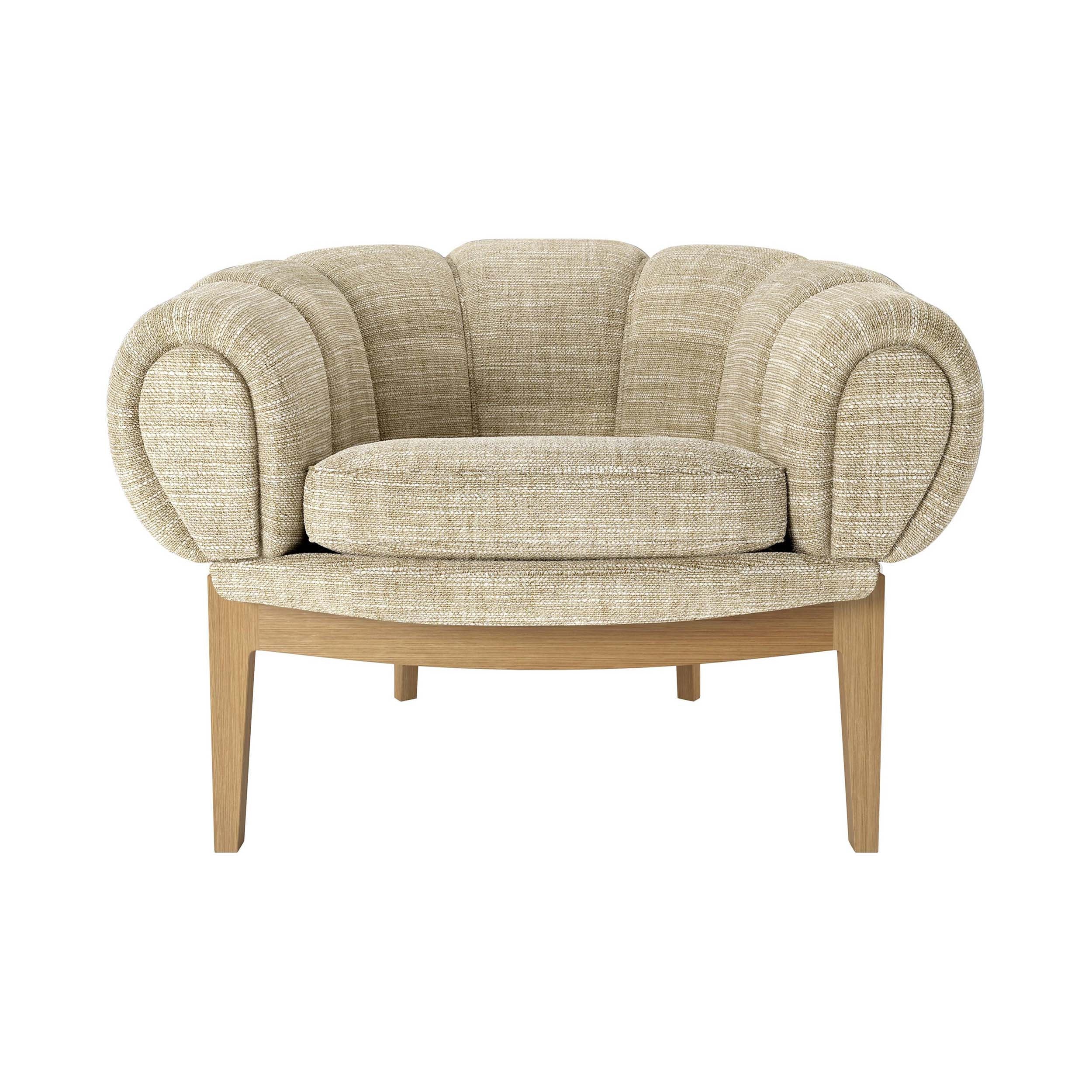 A midcentury standout, Croissant is an elegantly playful take on the traditional Chesterfield club chair. Now revived by Gubi, the seating from Danish architect and designer Illum Wikkelsø freely alludes to the optimism and relaxed attitudes of the 1960s. The complex curves of its distinctive rounded backrest are created with meticulously hand-stitched piping while the horseshoe curve comfortably accommodates a variety of sitting and lounging positions.