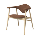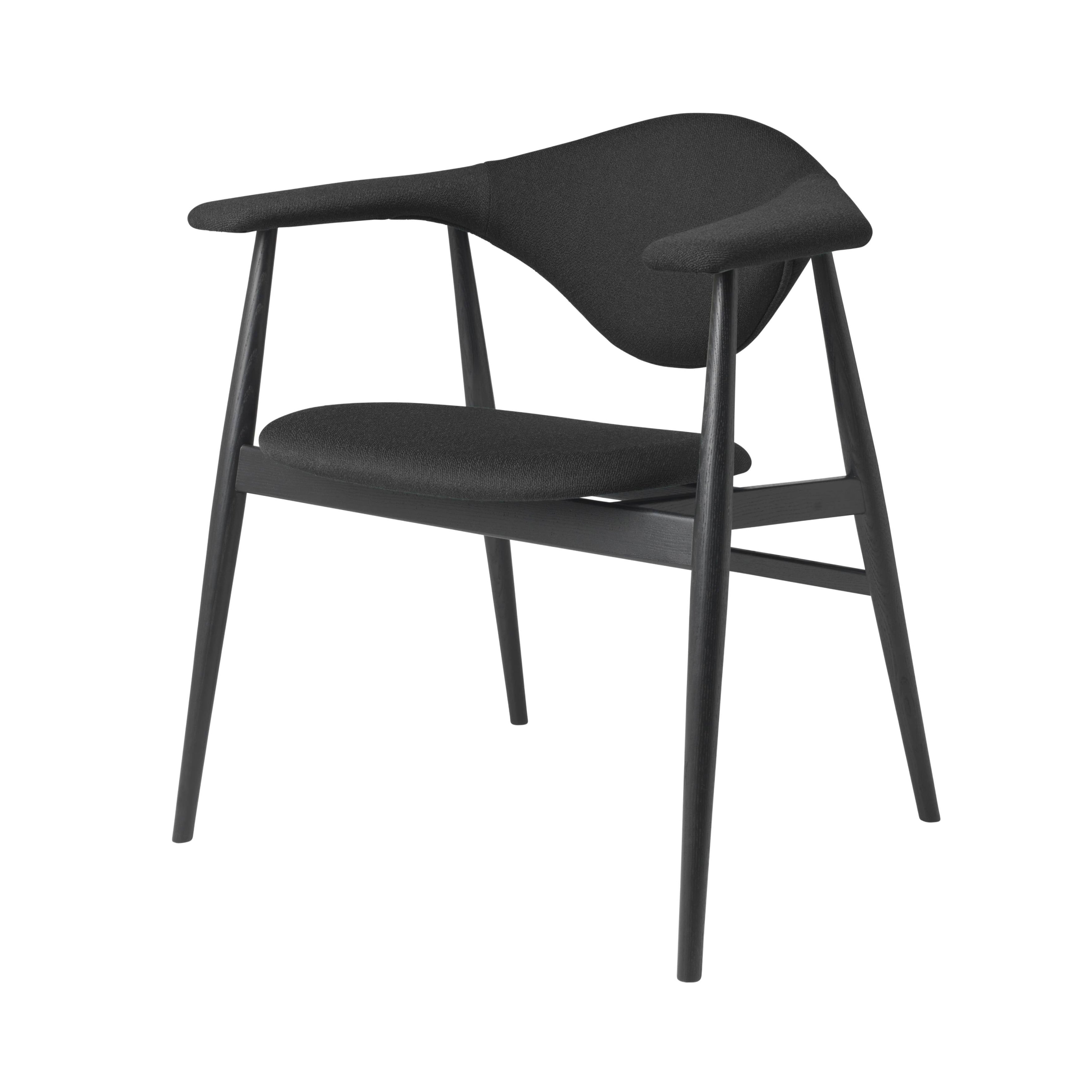 A genial wood base tilts the balance of this Masculo chair to the Scandinavian side of designer GamFratesi's amalgam of crisp Nordic style with a shot of Italian brio. Husband-wife duo Stine Gam and Enrico Fratesi play the signature idiosyncratic backrest against the clean lines of the solid wood frame for a highly versatile seating choice for dining or contract use. Wood finishes in black stained ash, natural oak, smoked oak and oiled American walnut to complement a wide variety of upholstery options in both premium textiles and rich leather.