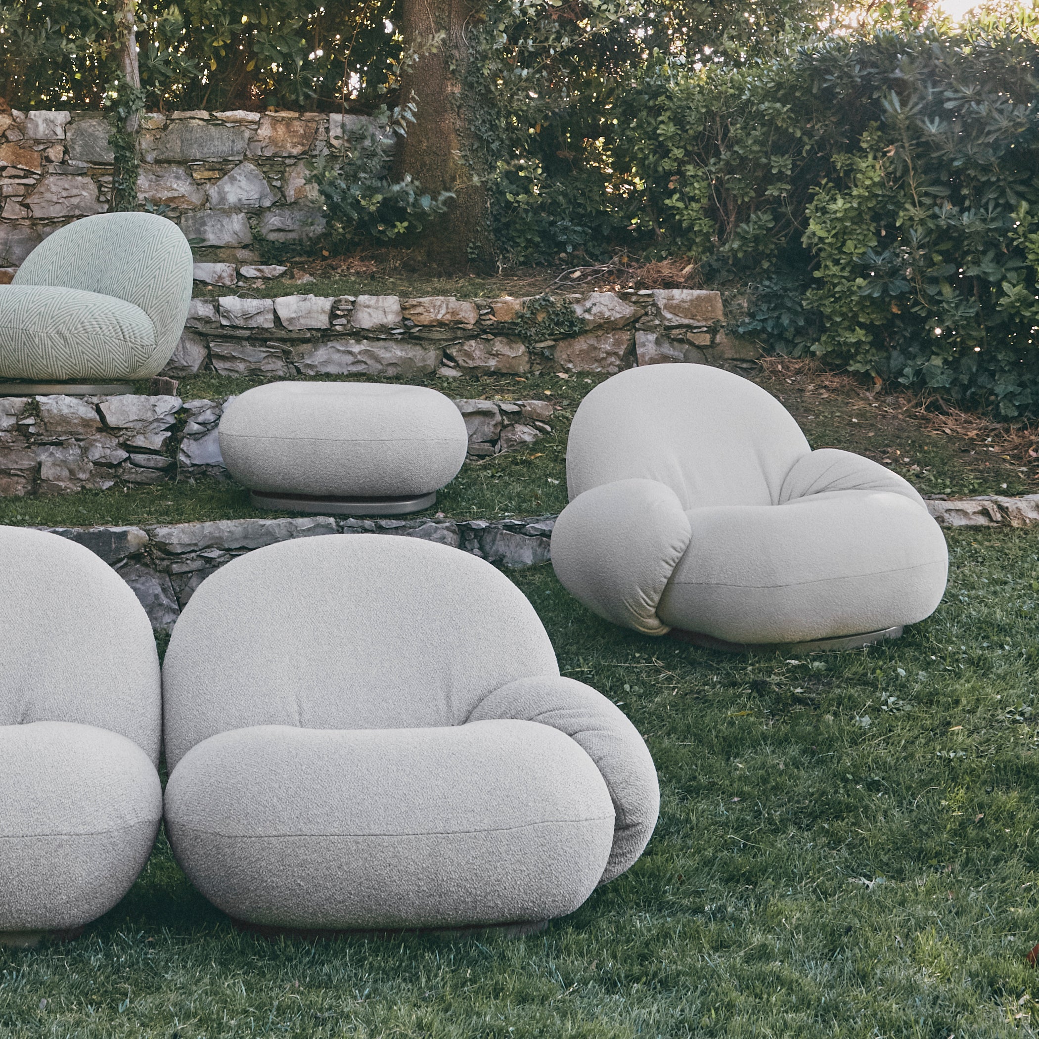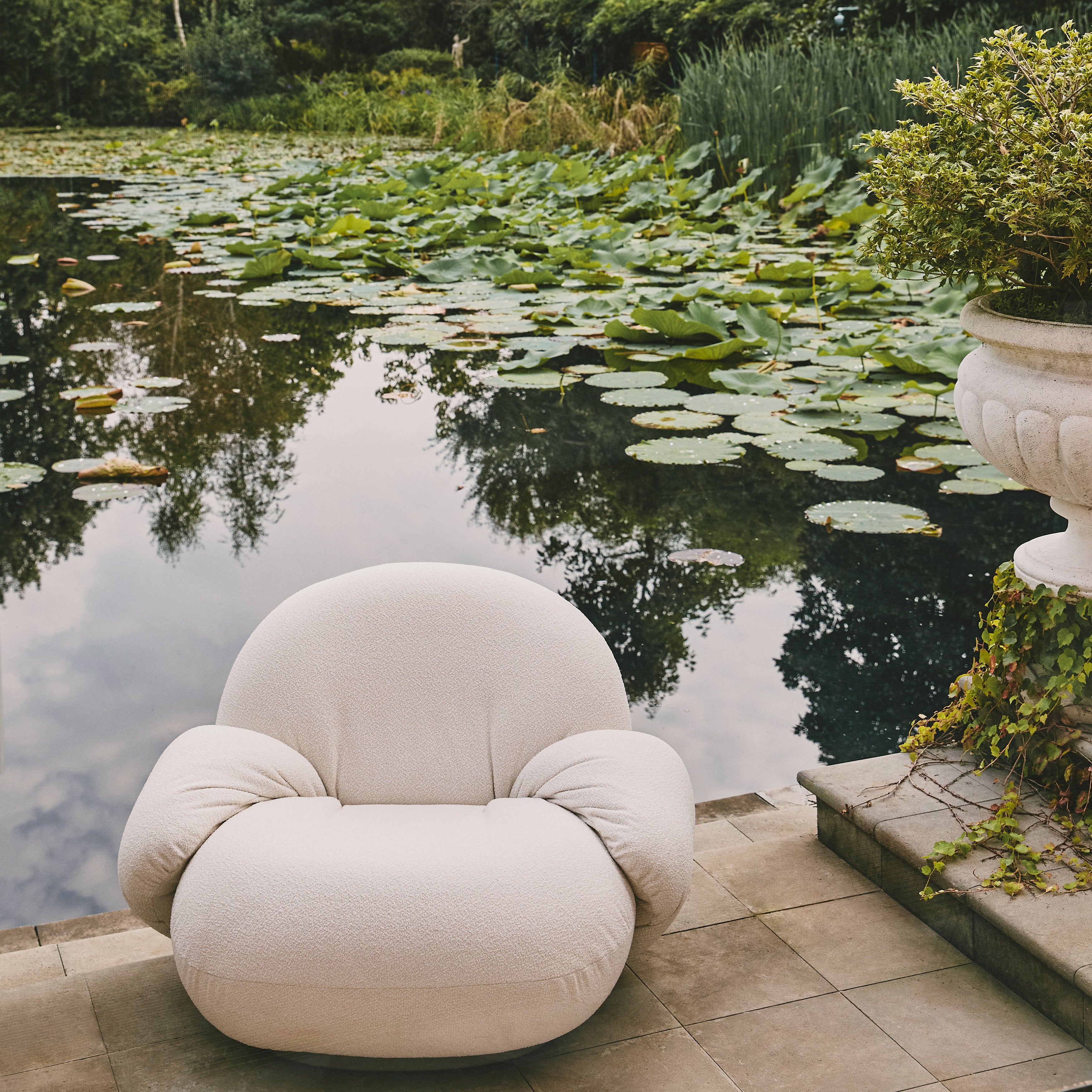 Gubi revisits designer Pierre Paulin’s enduring modernist Pacha collection with an outdoor version of his signature 1975 lounge chair. In a version complete with armrests, the seating features a specially developed membrane interlayer that is both water-resistant and breathable to ensure quick drying after exposure to rain. The base is made from moisture-resistant plywood and includes a full swivel mechanism in stainless steel. With only a small footprint, the chair can easily be clustered in different combinations for an alfresco oasis of comfort to suit any setting.