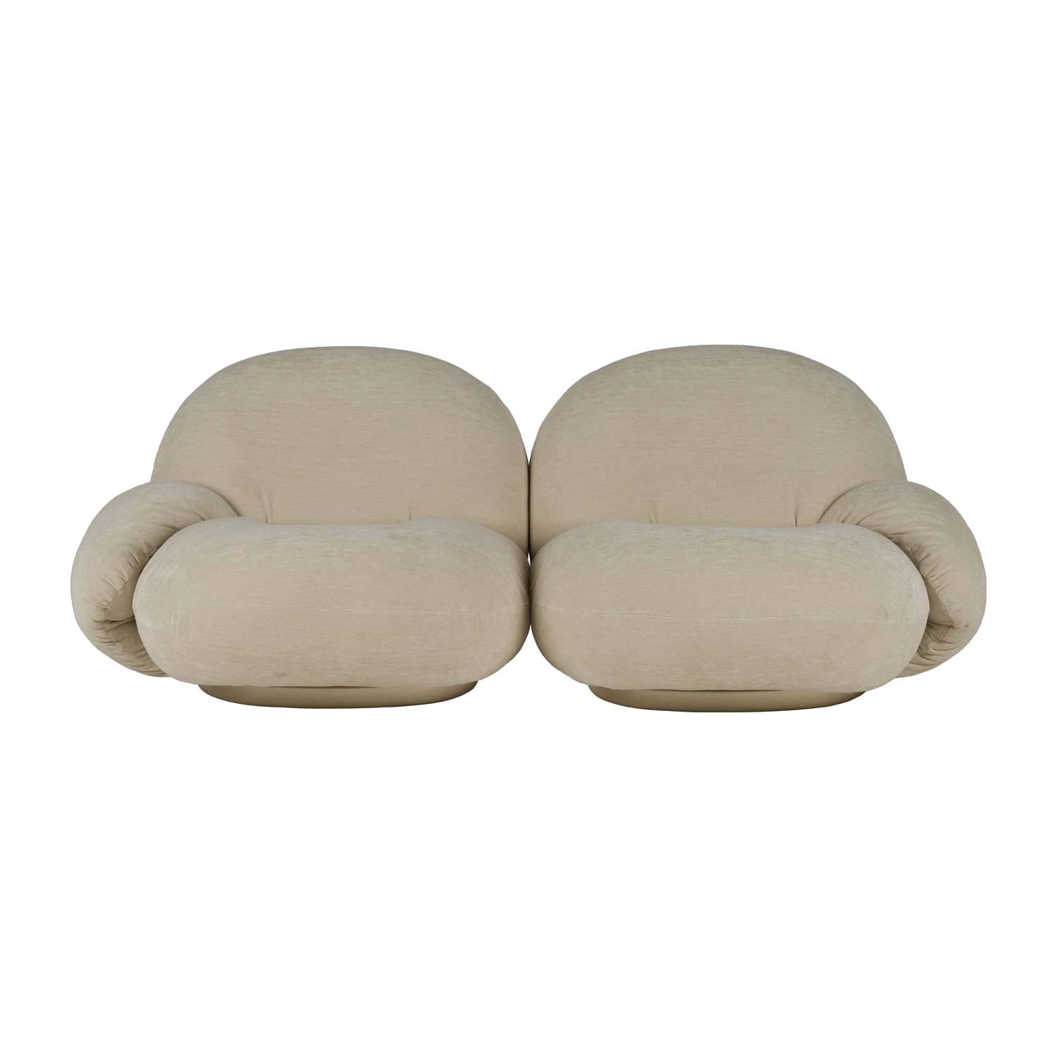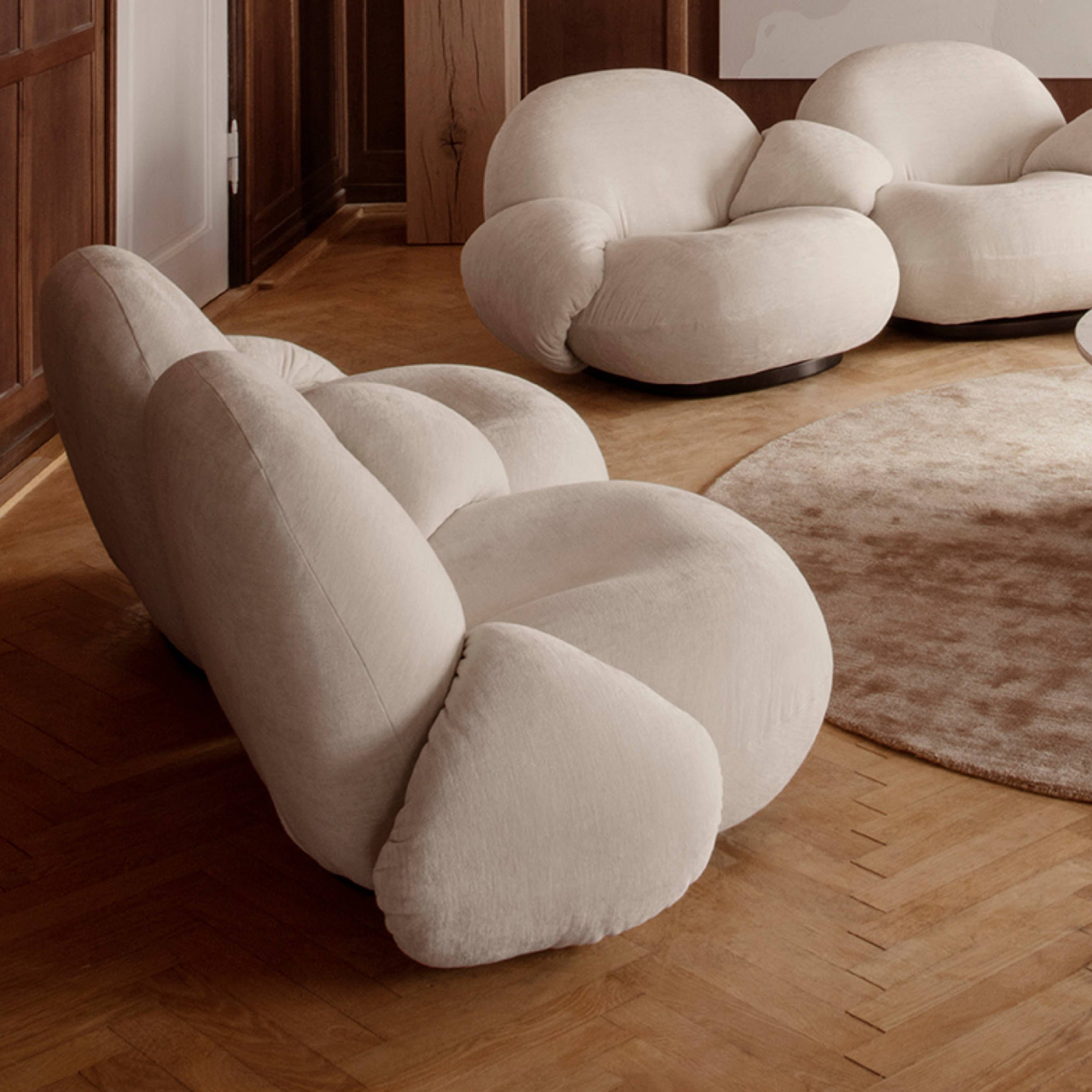 Pierre Paulin’s 1975 vision of sitting on a cloud formation is enhanced with armrests on the sides and middle providing even more support and allowing one to lean with ease. Now reissued by Gubi, Pacha’s 2 Seater reveals the French designer’s obsession for ergonomic precision and exacting craftsmanship behind the sofa’s hyper-relaxed contours. A choice of black or pearl gold base and a wealth of upholstery options combine to offer a completely customizable version of this now iconic seating.