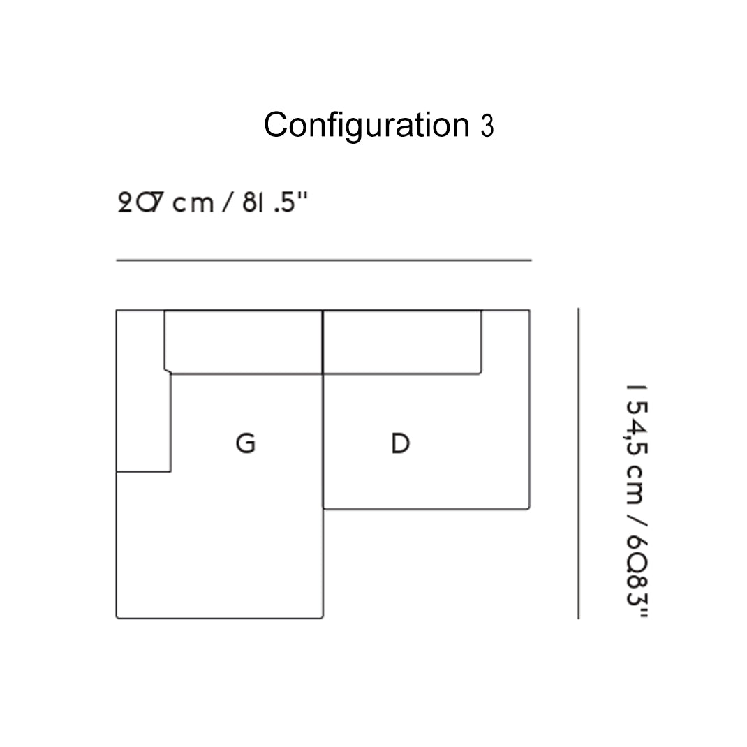 - Configuration 3: 27.2" h x 81.5" w x 60.8" d (69x207x154.5cm)