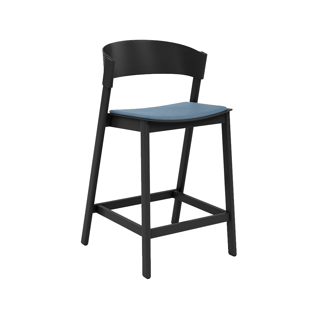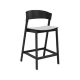 In natural lacquered oak with a buttery cognac-colored leather seat, Muuto offers an fine upholstered version of Thomas Bentzen's wood counter stool. Form-pressed veneer gets a graceful Scandinavian interpretation in the curve of Cover's backrest that folds around the rear legs with elegant simplicity. A similarly cradling rounded seat and integrated footrest assure hours of comfort at mealtime, when entertaining or even at a workplace counter desk.